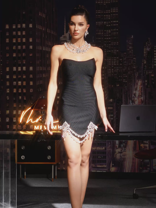 Pavelyn Strapless Pearl Bandage Mini Dress With Necklace