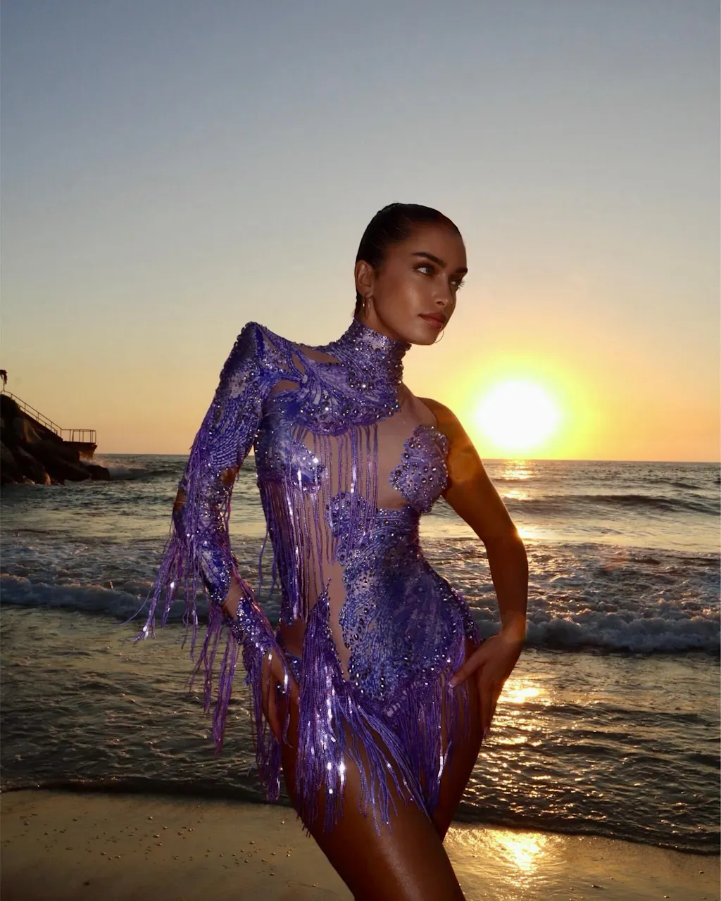 Introducing the Shatora One Shoulder Rhinestone Fringe Bodysuit, designed in a beautiful and bold purple color. Featuring rhinestone accents and fringe details for added flair, this bodysuit is perfect for making a statement and standing out at any event. Elevate your style with this must-have piece!