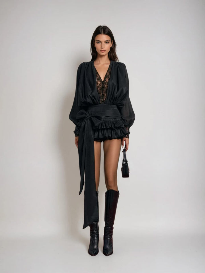 Elevate your style with the Ulaeron V Neck Lace Bow Mini Dress, featuring delicate lace detailing and a flattering V neckline. The charming bow accent adds a feminine touch, while the mini length offers a playful, confident look perfect for parties or special occasions. Designed to combine elegance and modern flair, this dress ensures you stand out effortlessly.