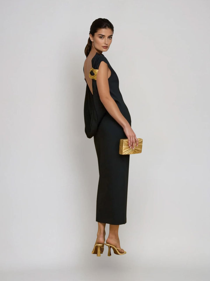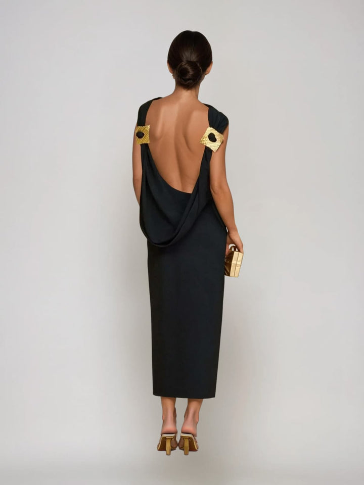 Turn heads effortlessly in the Uzrik Backless Midi Dress, designed to highlight your silhouette with its daring open-back detail. This elegant midi-length dress combines sophistication with a touch of allure, perfect for evening events or special occasions. Crafted to offer a flattering fit, it ensures you stay comfortable while making a confident statement. Elevate your wardrobe with this striking piece that blends timeless style with modern flair.