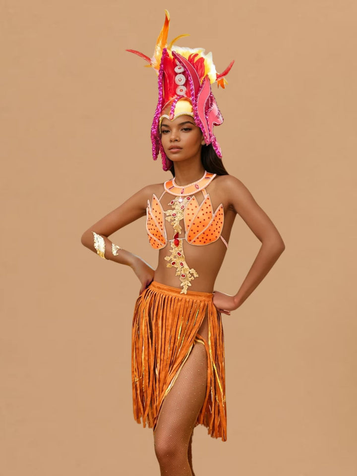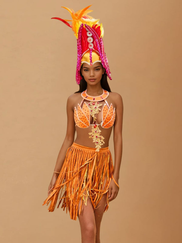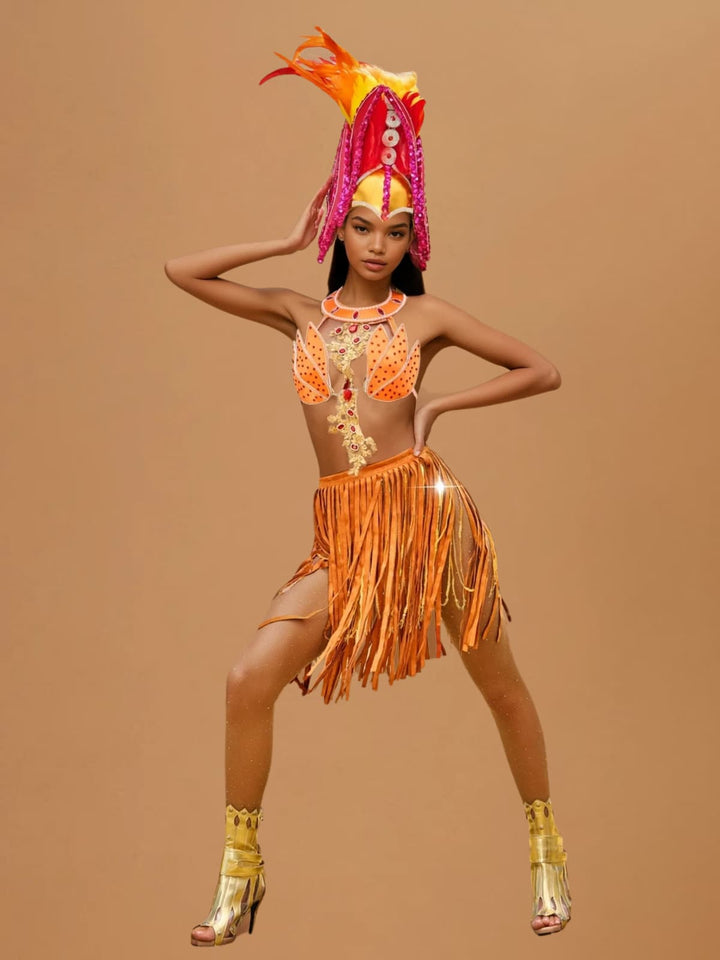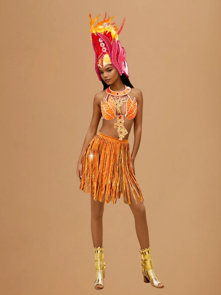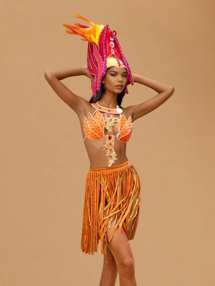 Elevate your style with the Wyvorn Fringe Rhinestone Skirt Set in Orange. This eye-catching set combines sparkling rhinestones with playful fringe detailing, delivering a look that captures both glamour and movement. Perfect for making a statement at parties or special occasions, it brings a lively, confident vibe to your wardrobe. Stand out effortlessly with this dazzling, feminine ensemble designed to turn heads wherever you go.