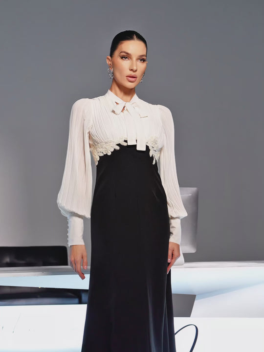 Fidda Balloon Sleeve Ruched Tie Up Midi Dress