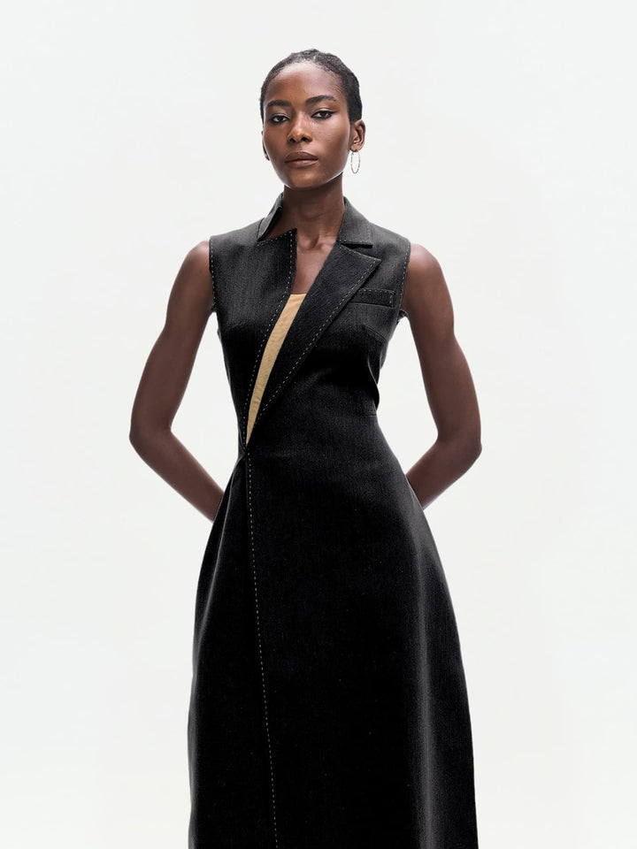 Elevate your wardrobe with the Ignatius Sleeveless Midi Dress in Black. This elegant dress offers a flattering silhouette with its sleeveless design and midi length, perfect for both day and evening occasions. The rich black color adds a touch of sophistication, making it a versatile choice for any event. Crafted to highlight your natural shape, it combines comfort and style effortlessly, ensuring you look polished and confident wherever you go.