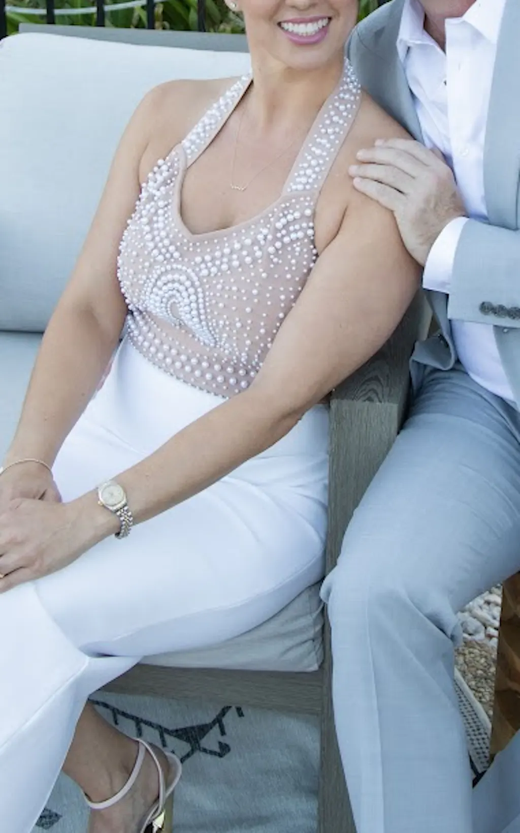 Isabella Halterneck Pearls Bandage Dress In Beige