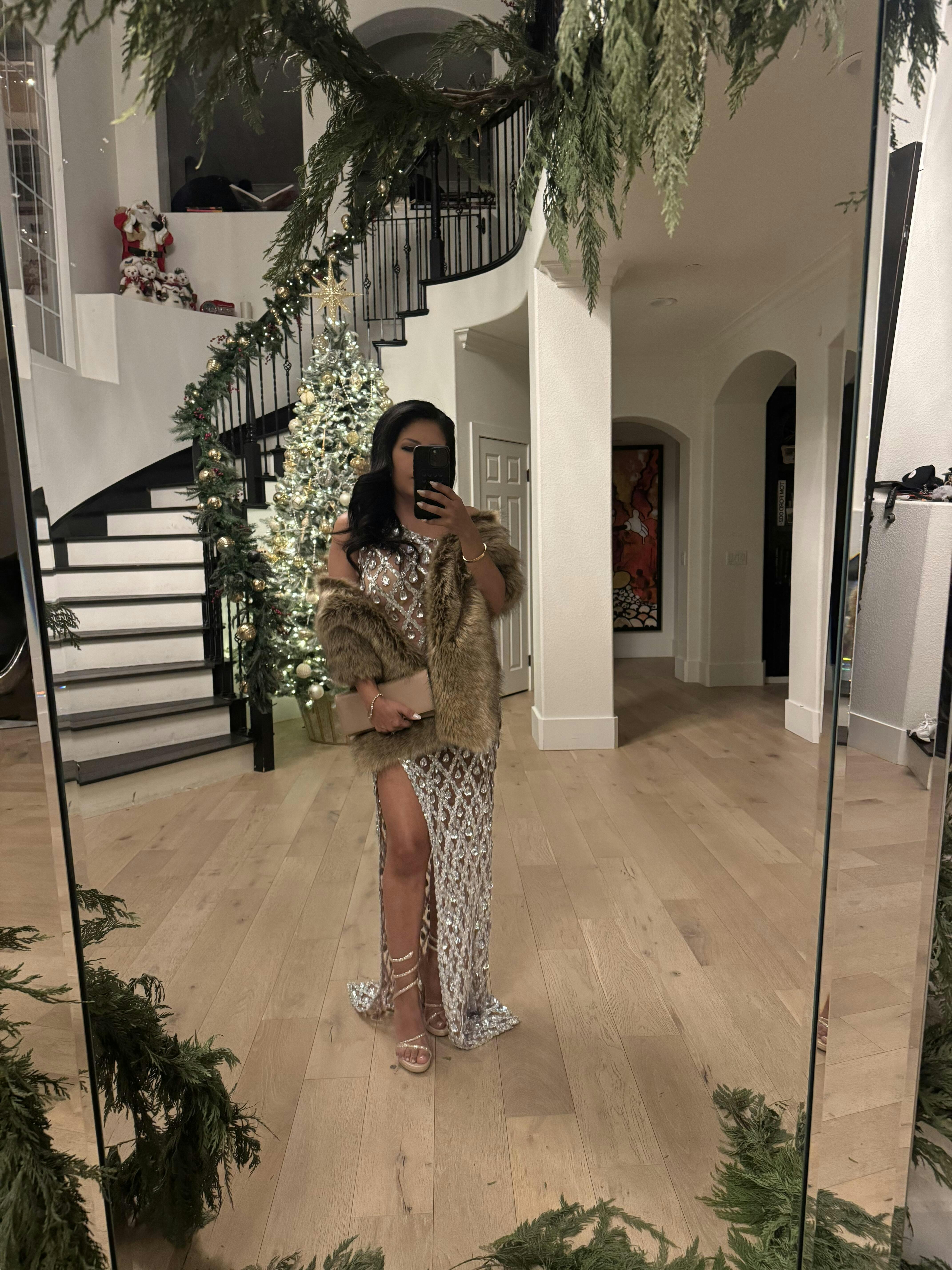 Liora One Shoulder Sequin Crystal Maxi Dress