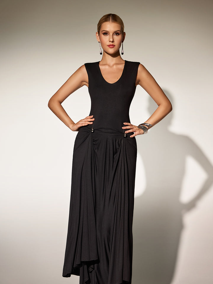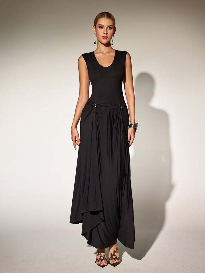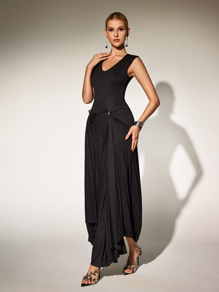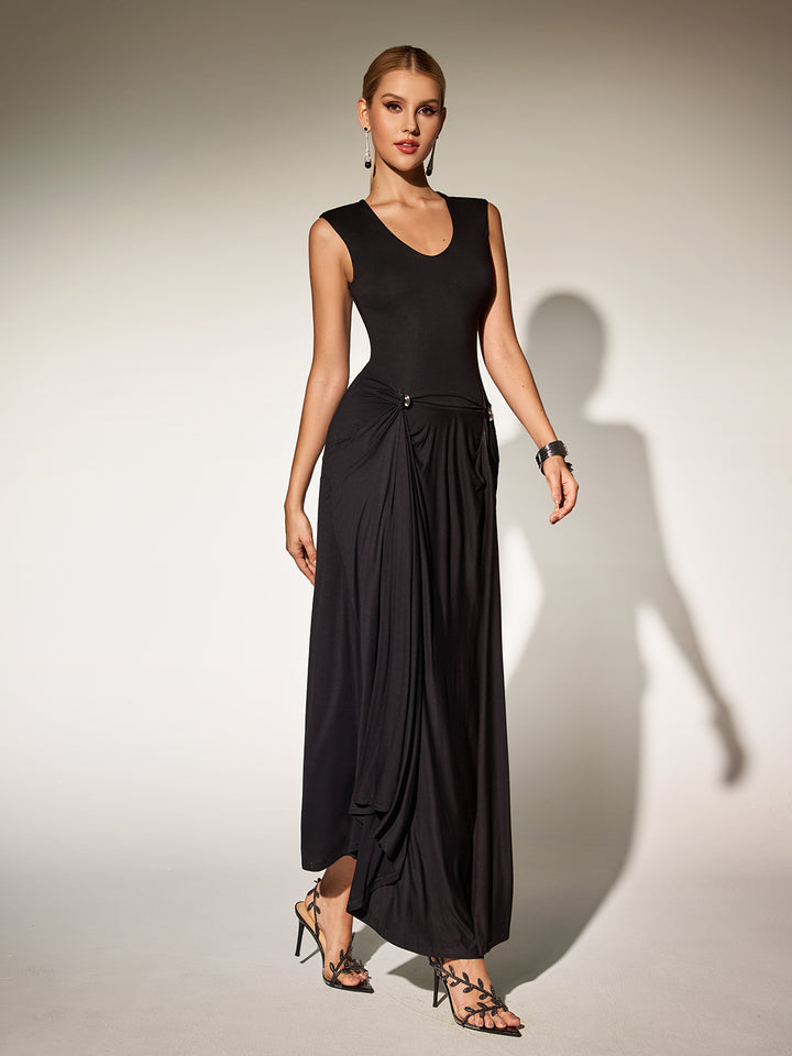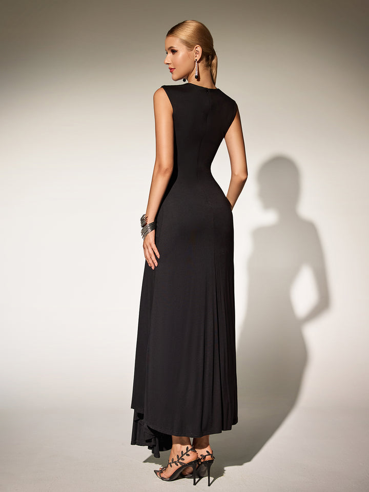 Make a stunning statement with the Paldor V Neck Ruched Maxi Dress in Black. Designed to accentuate your curves, the ruched detailing creates a flattering fit, while the deep V-neckline adds a touch of elegance. Its flowing maxi length ensures graceful movement, perfect for formal events or evenings out. Embrace timeless sophistication with this versatile dress that effortlessly combines comfort and style.