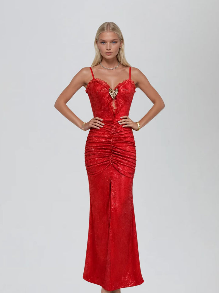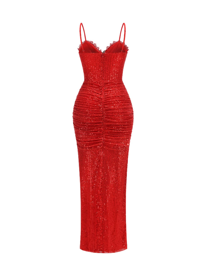 Turn heads effortlessly in the Avalen Spaghetti Sequin Split Maxi Dress. Featuring shimmering sequins and a daring side split, this dress combines elegance with a hint of boldness. Its slender spaghetti straps create a flattering silhouette, perfect for evening events or special occasions. Embrace glamour and confidence in a dress that’s designed to make every moment unforgettable.
