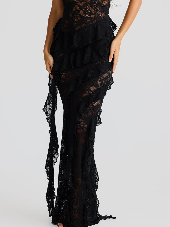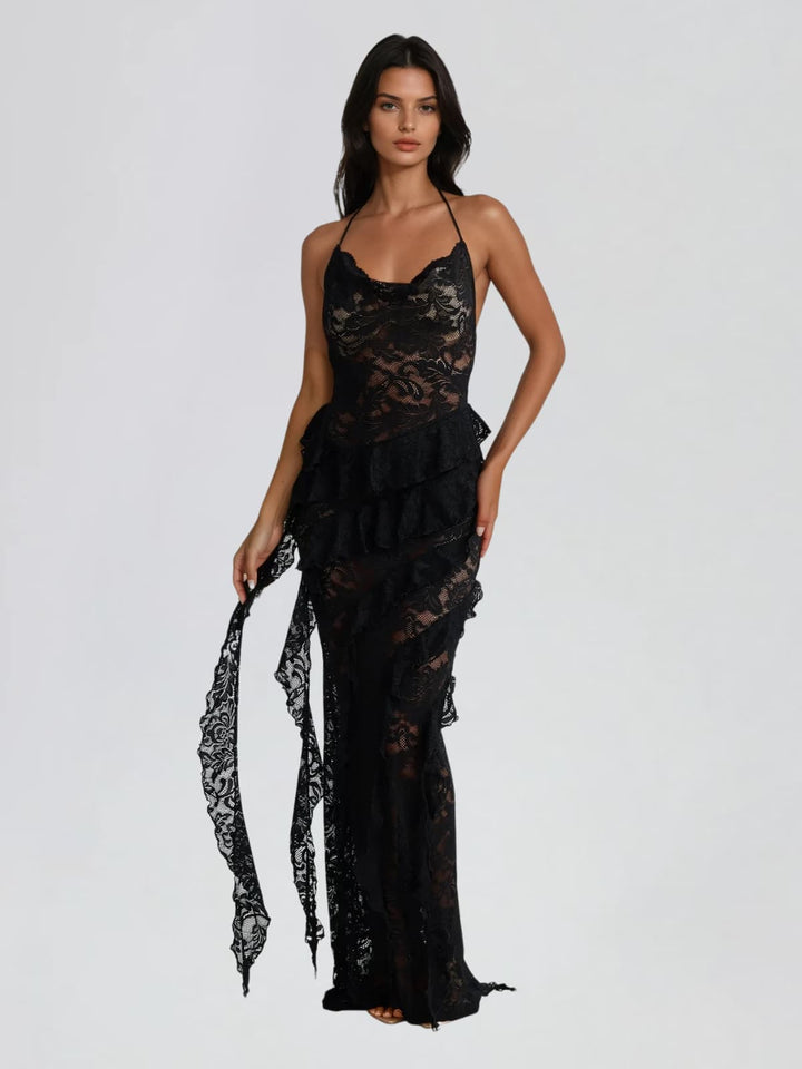 Elevate your evening with the Cyanea Backless Lace Draped Maxi Dress. Featuring delicate lace and an alluring backless design, this dress combines elegance with a touch of daring sophistication. The draped silhouette flatters every figure, making it perfect for special occasions where you want to leave a lasting impression. Step confidently into style and grace with this stunning maxi dress.