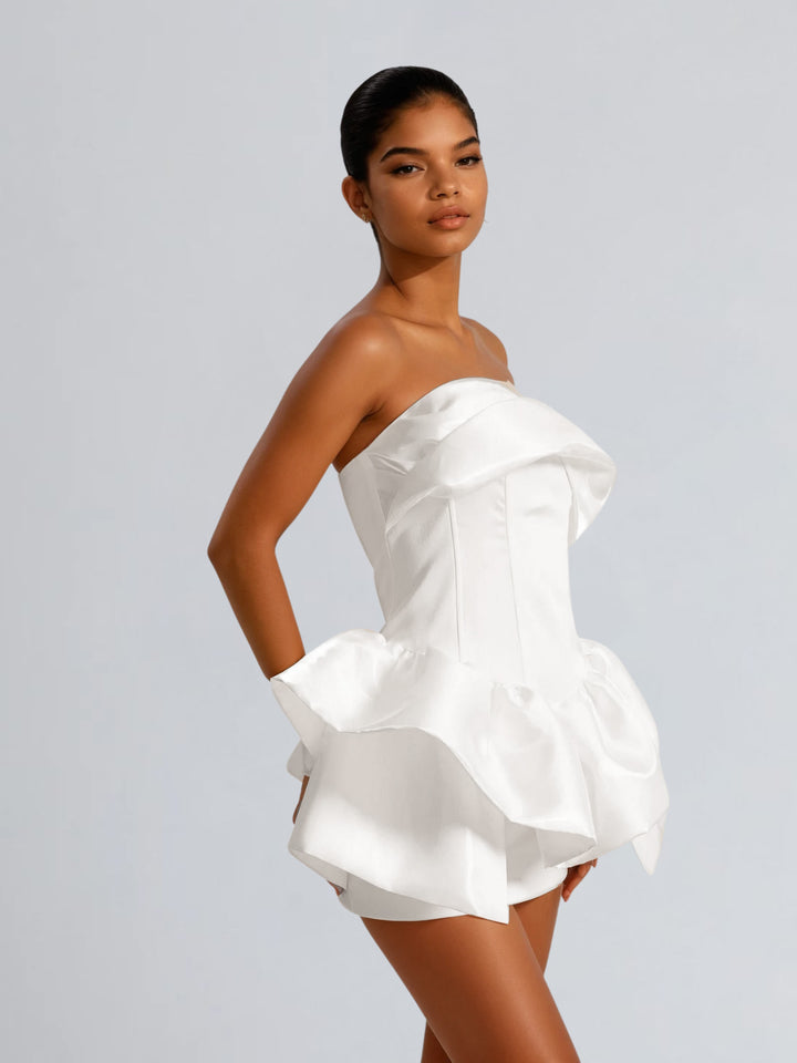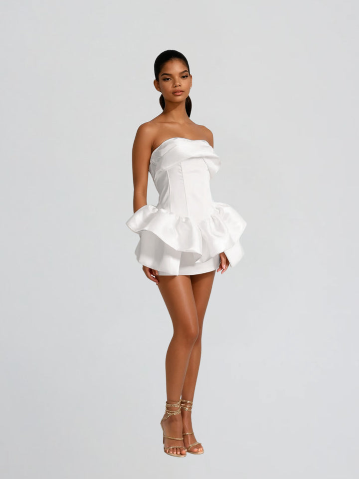 Elevate your evening look with the Dulcimer Strapless Satin Mini Dress. Crafted from smooth satin, this figure-flattering dress offers a chic, strapless silhouette that highlights your shoulders and neckline. Its mini length adds a flirty touch, perfect for making a confident statement at parties or special events. Comfortable yet striking, this dress effortlessly blends elegance with modern style to ensure all eyes are on you.