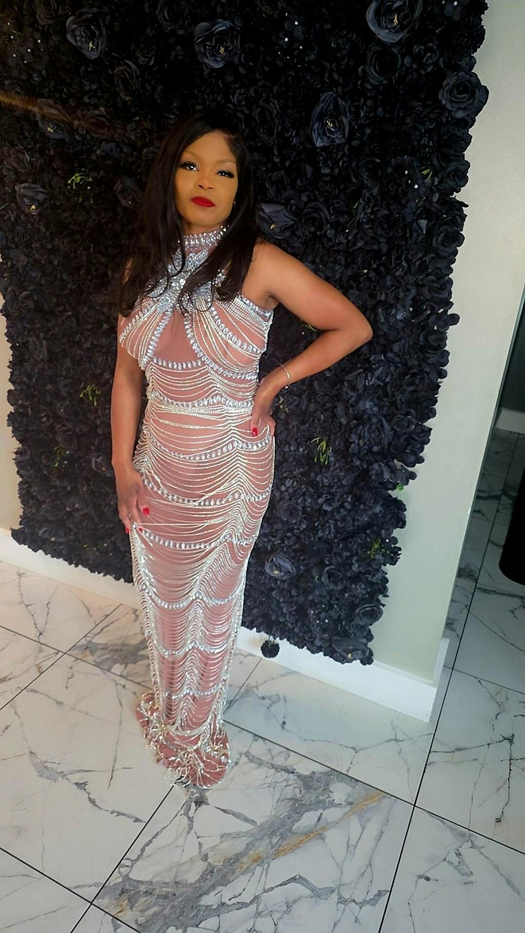 Feel like a goddess in our Gienna Halterneck Rhinestone Split Maxi Dress! This stunning dress features a halterneck design and rhinestone detailing, adding a touch of elegance and glamour to any occasion. The high slit adds a touch of allure, making you stand out and feel confident. Upgrade your wardrobe today with this must-have dress!