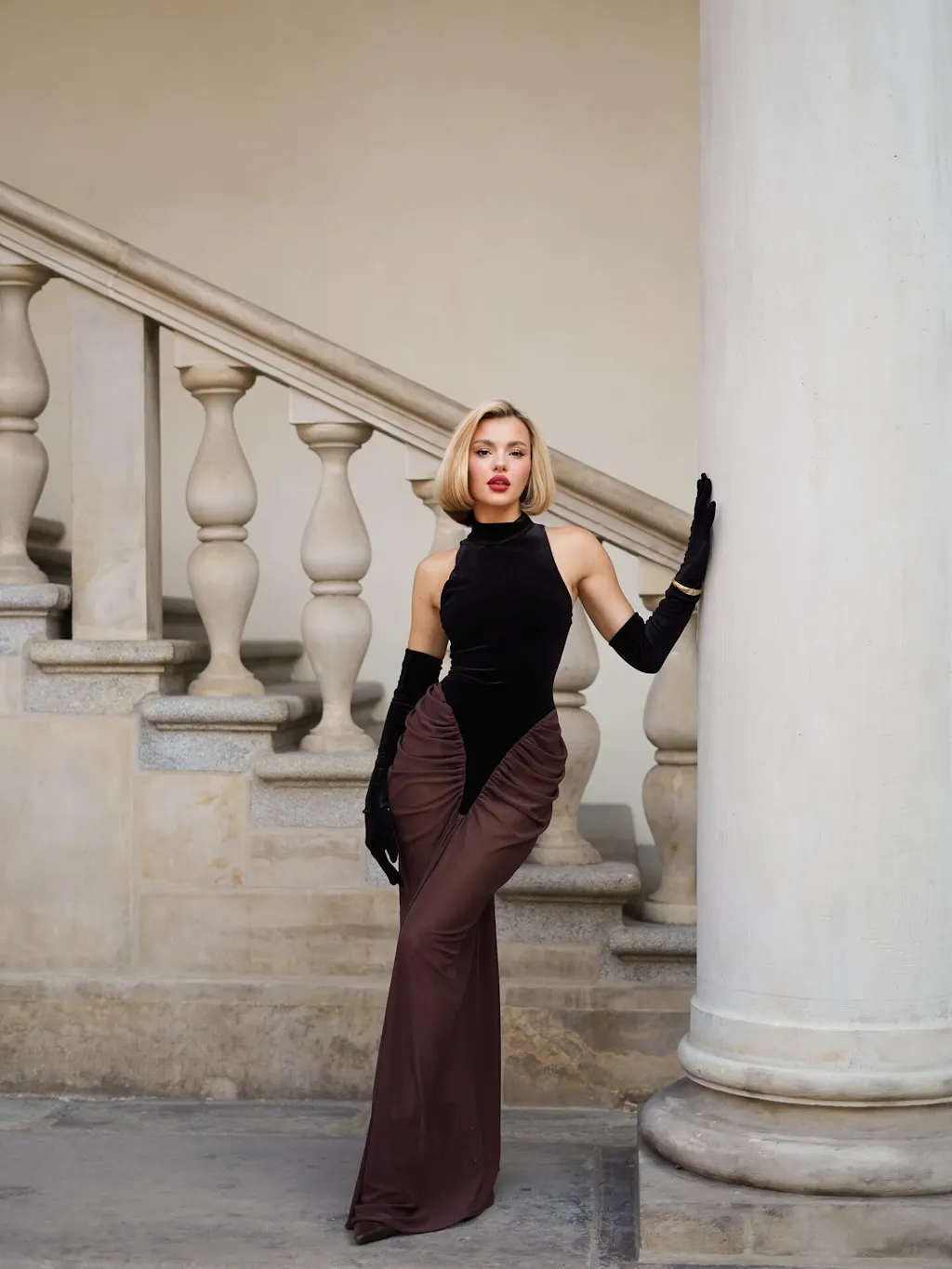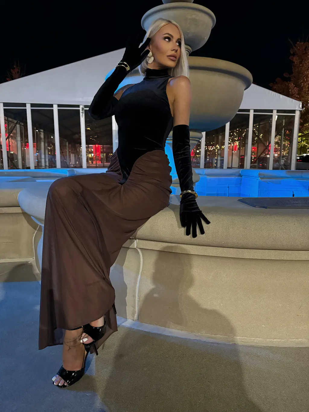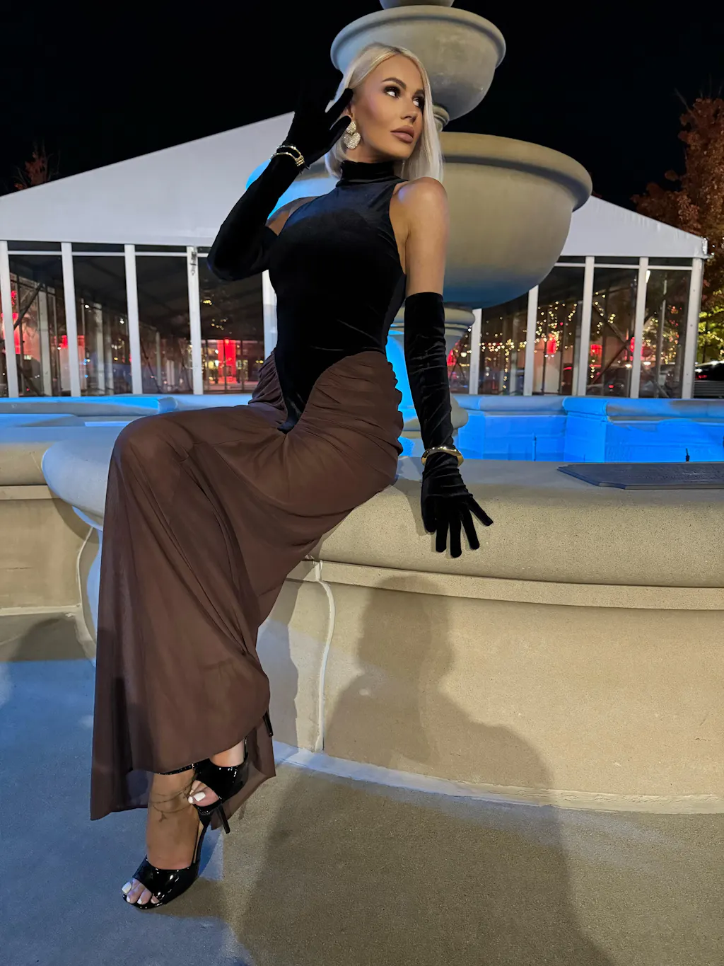 Lenore Halterneck Velvet Maxi Dress With Gloves