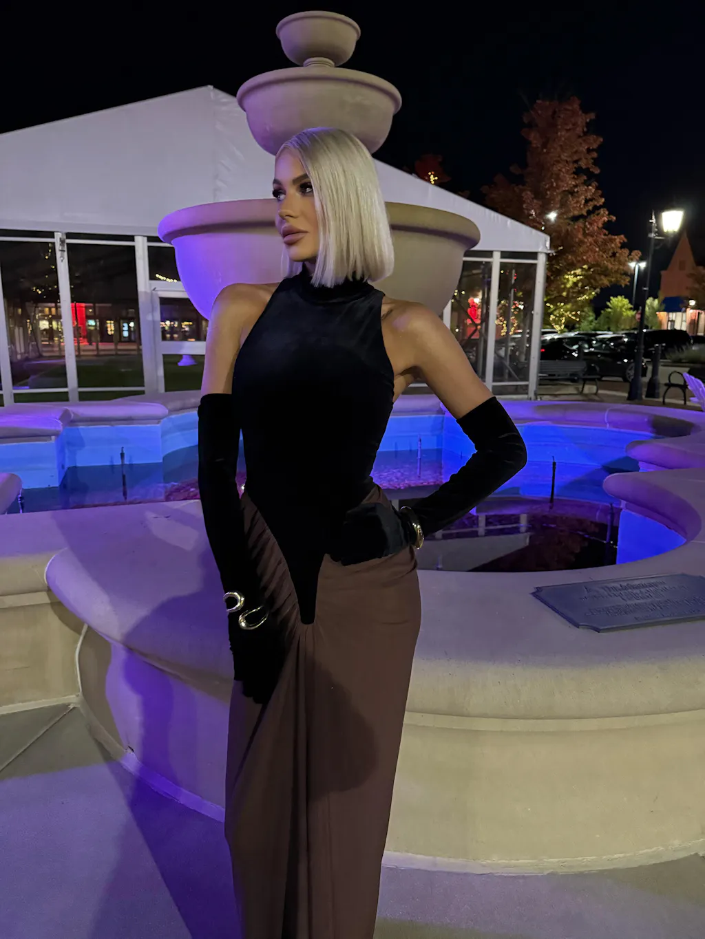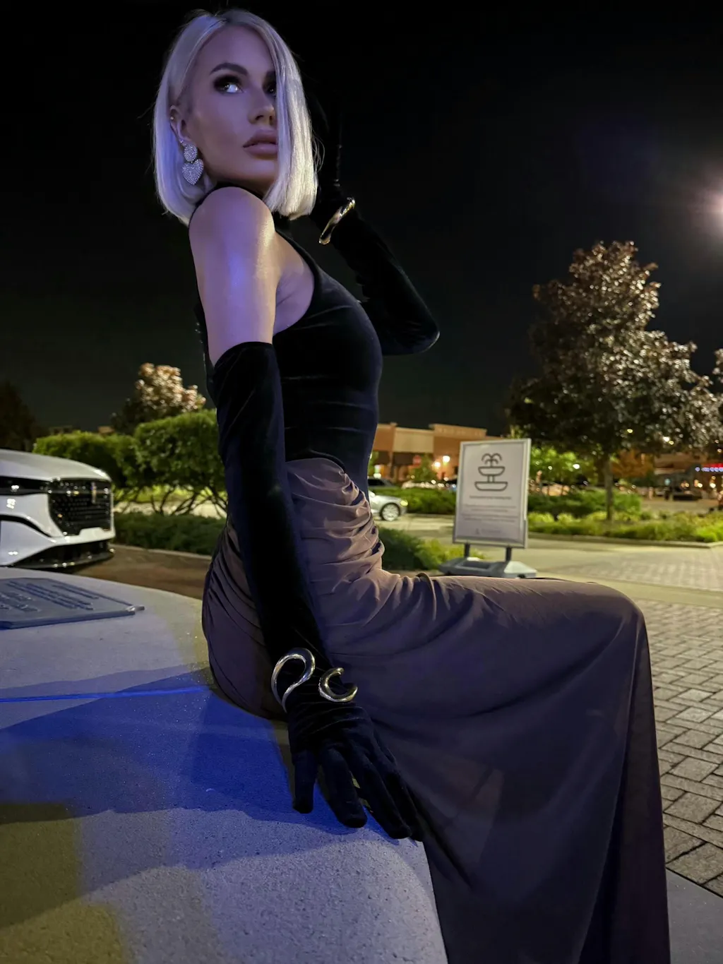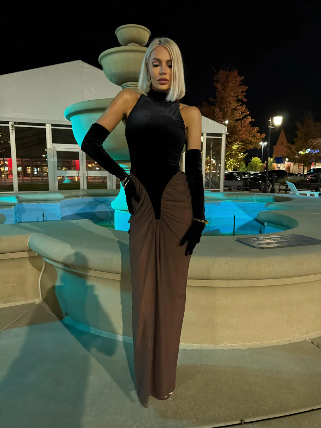 Lenore Halterneck Velvet Maxi Dress With Gloves