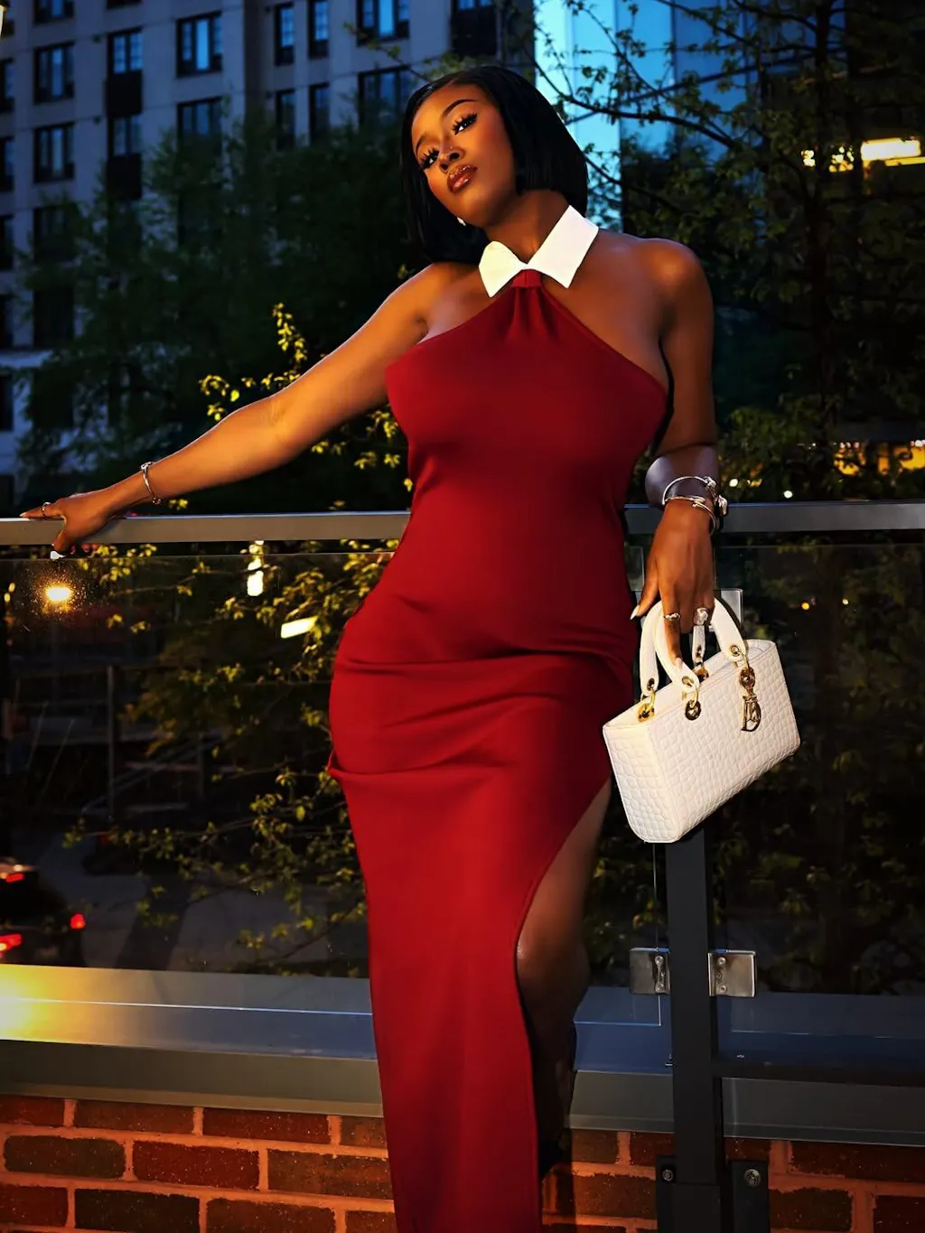 Lyrxel Halterneck Split Bandage Maxi Dress