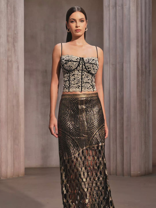 Zavixor Spaghetti Lace Corset Crop Top