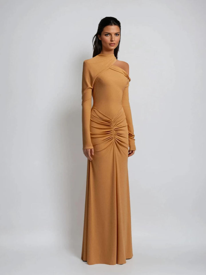 Aelius One Shoulder Ruched Maxi Dress In Orange