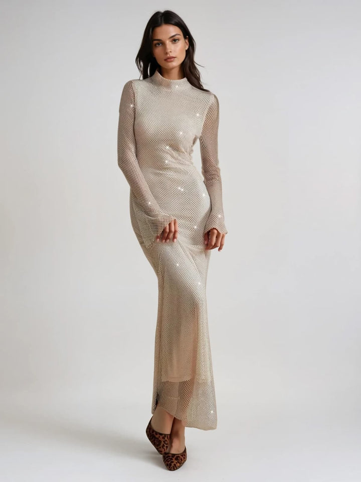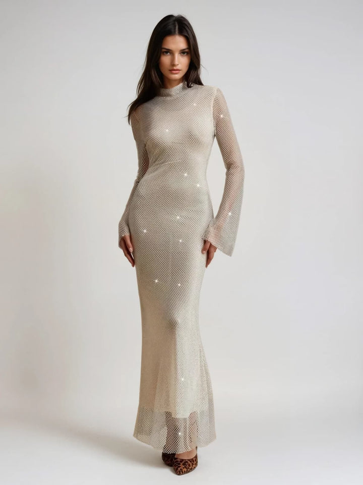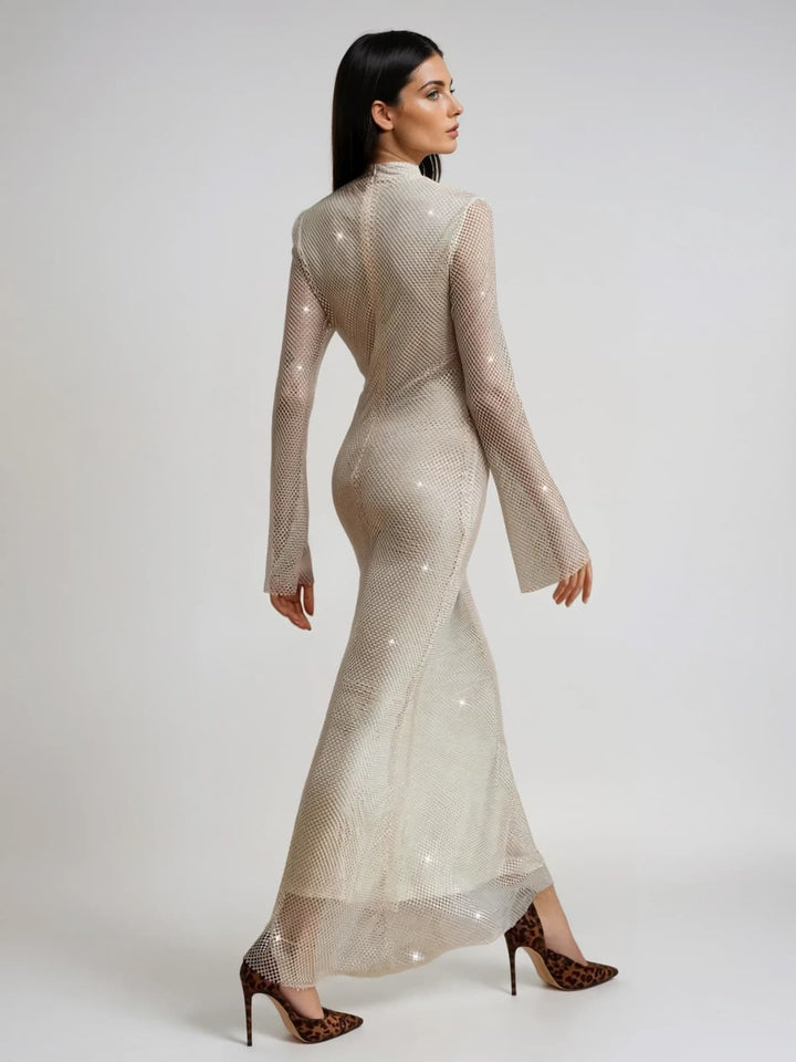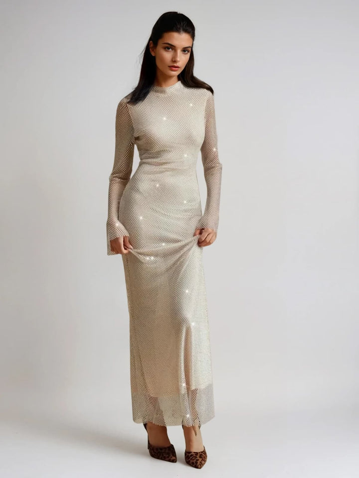 Embrace elegance and sparkle with our Aingeal Long Sleeve Crystal Maxi Dress. Made with stunning crystals and designed with long sleeves, this dress is perfect for any special occasion. Let your inner radiance shine through with this beautiful and timeless piece.