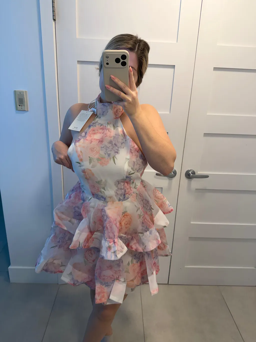 Alecto Backless Flower Printed Bow Mini Dress