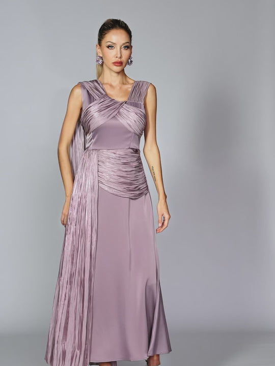 Experience luxury with the Anathema Ruched Draped Satin Maxi Dress. Its smooth satin fabric and elegant draping create a stunning silhouette that captures light beautifully. The ruched detailing enhances your curves, while the maxi length adds a touch of sophistication. Perfect for formal events or glamorous evenings, this dress ensures you make an unforgettable statement with effortless charm.