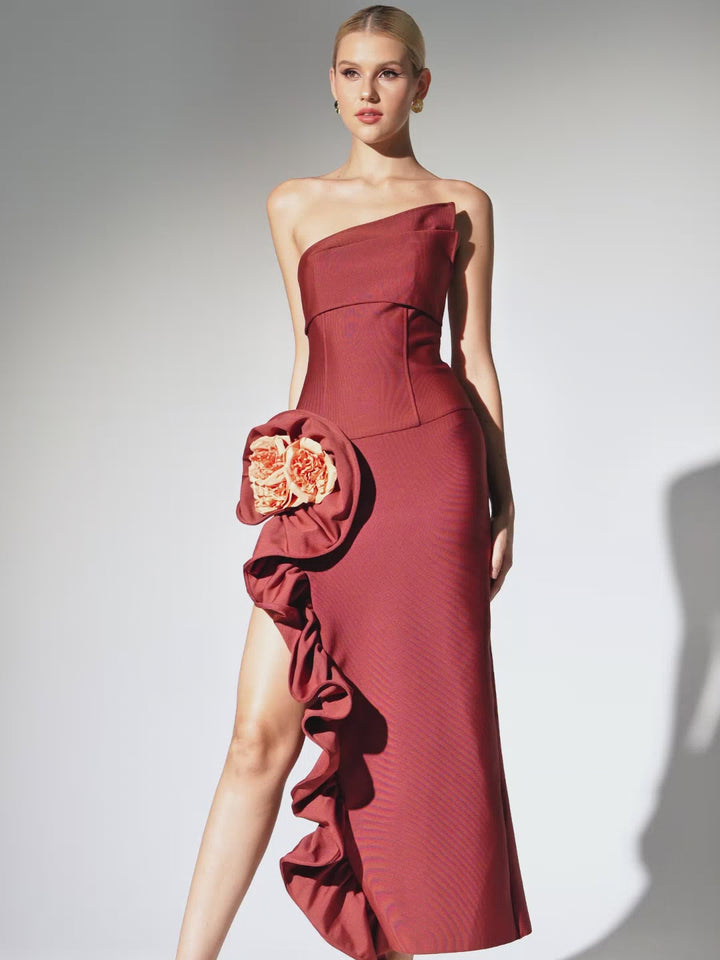 Braex Strapless Flower Tiered Bandage Maxi Dress