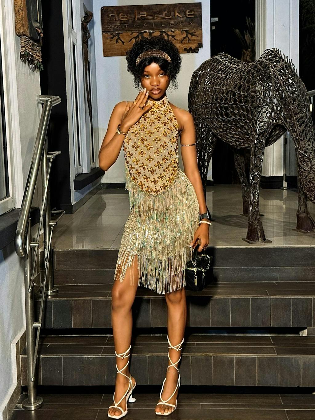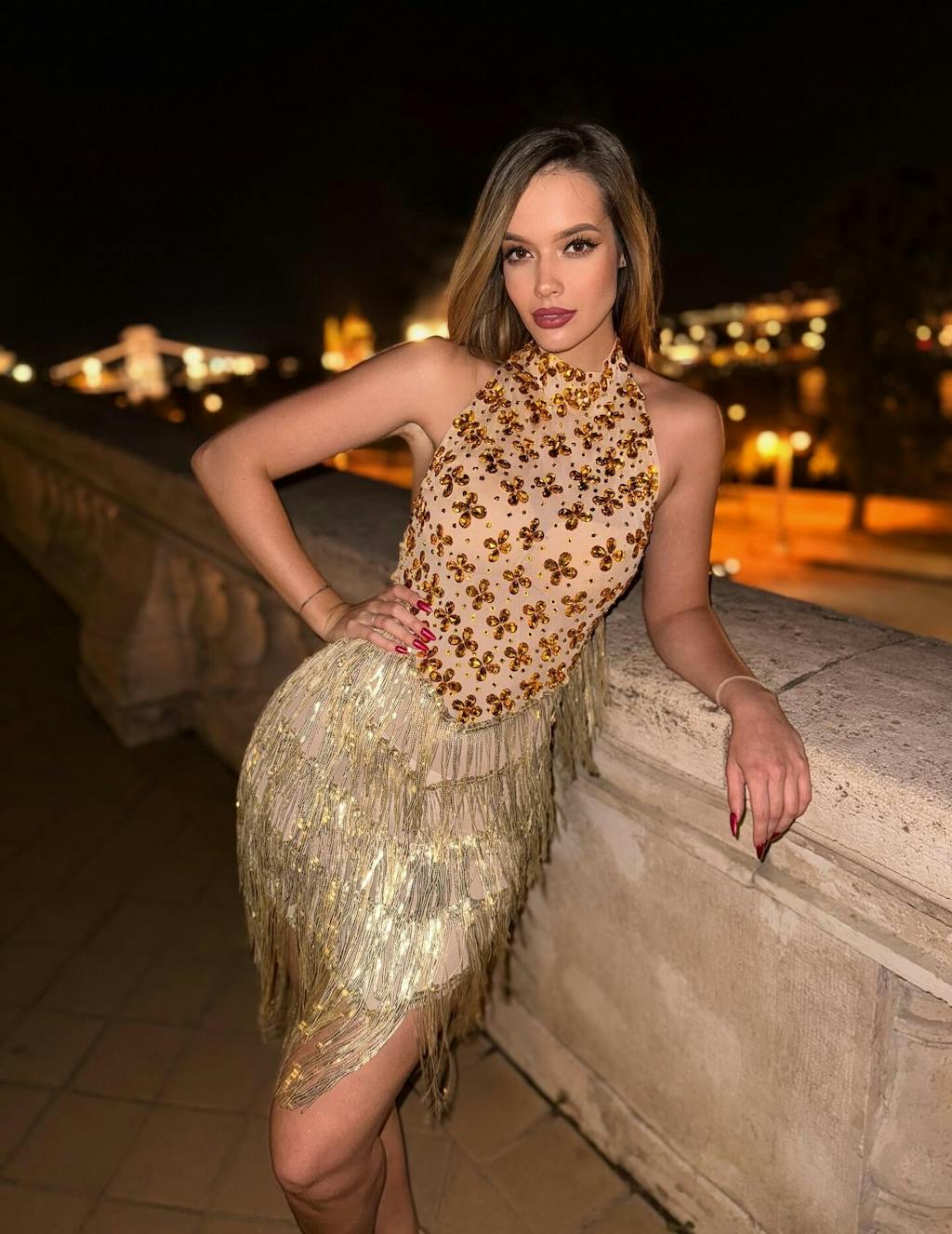 Effortlessly exude glamour and elegance with the Caelumara Embellished Fringe Mini Dress. Featuring intricate embellishments and playful fringe, this dress is perfect for any special occasion. You'll feel like a bohemian goddess as you dance the night away in this stunning and unique piece.