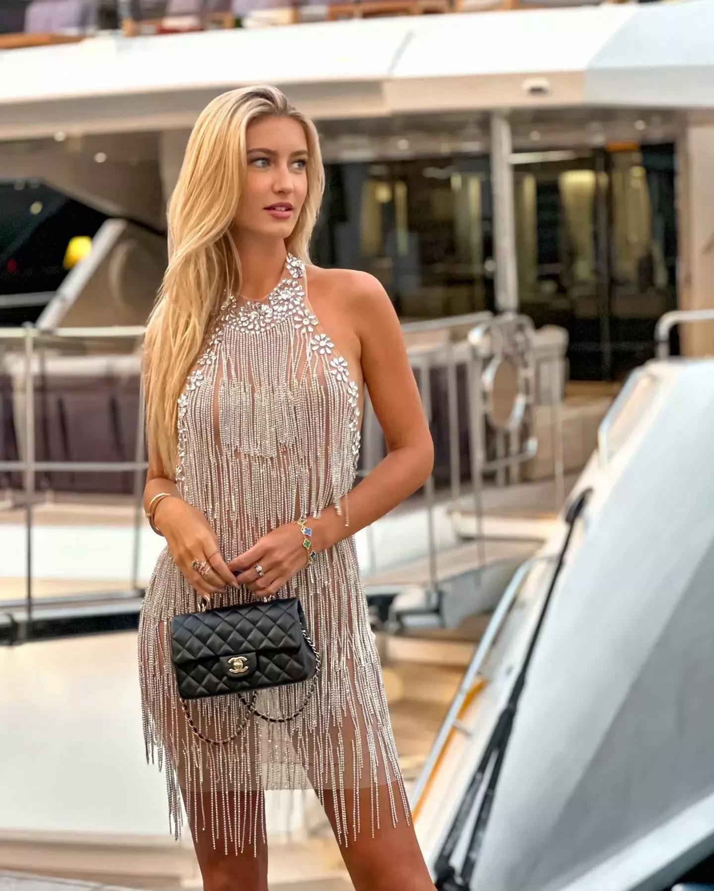 This charming mini dress will make you shine! The Charlize Crystal Fringe Mini Dress features a striking crystal fringe design that adds a special sparkle to any evening look. Its lightweight and mini length make it perfect for an effortless, sophisticated look.