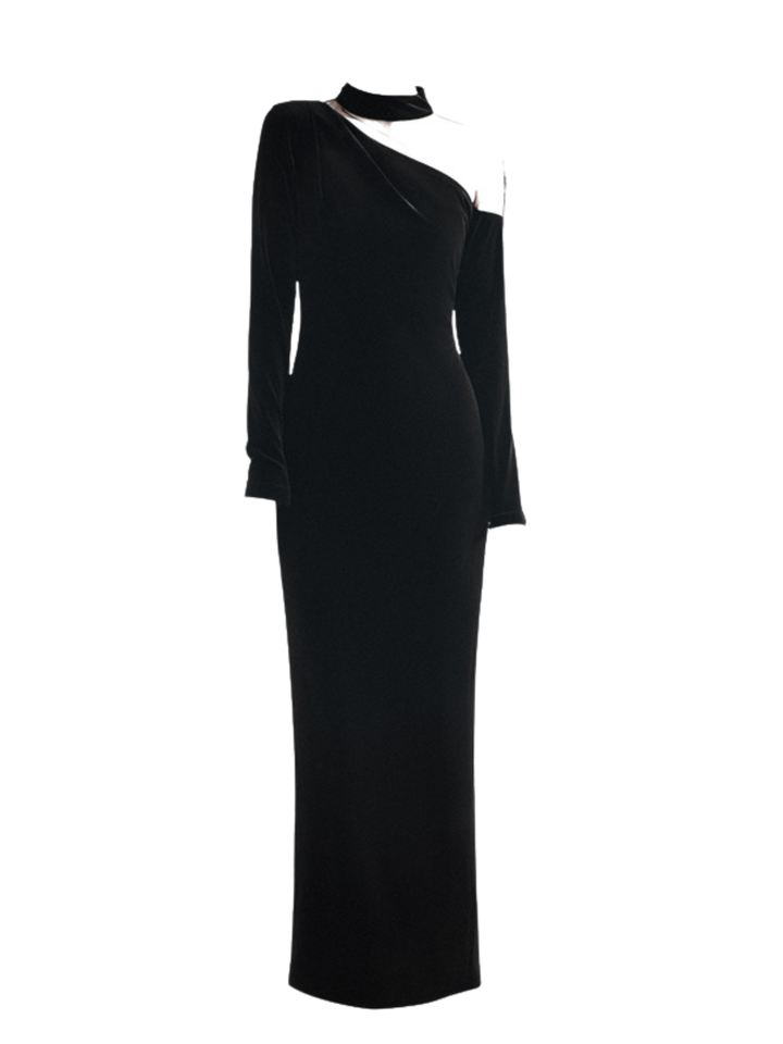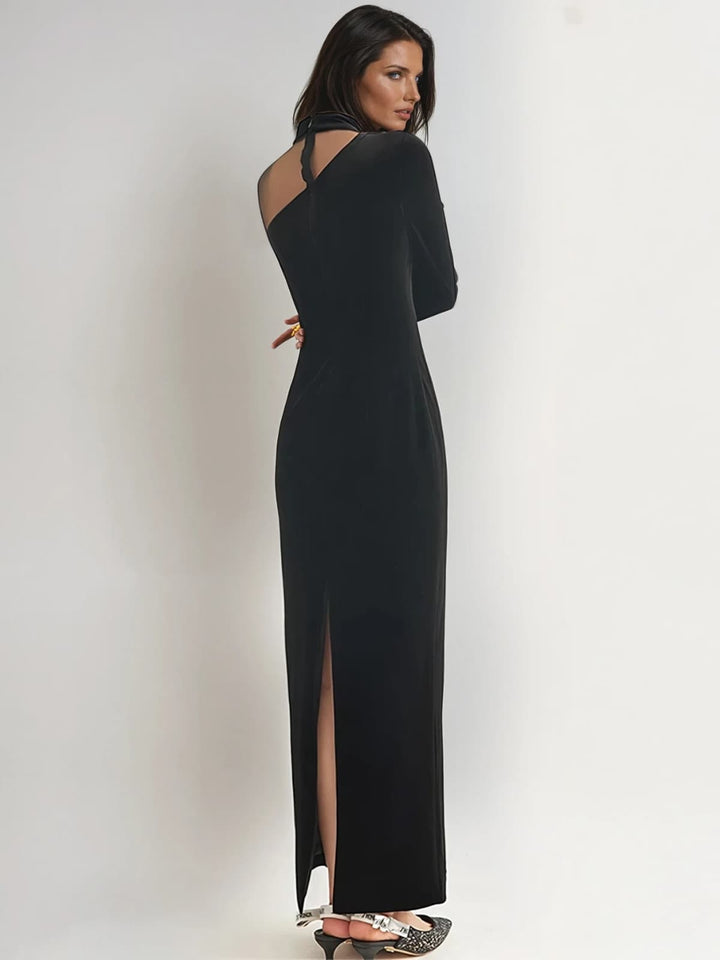 Cyrax Stand Collar Velvet Split Maxi Dress