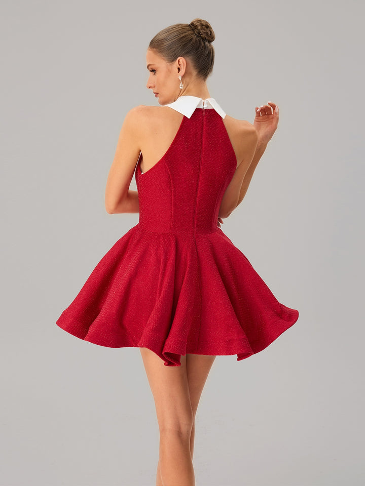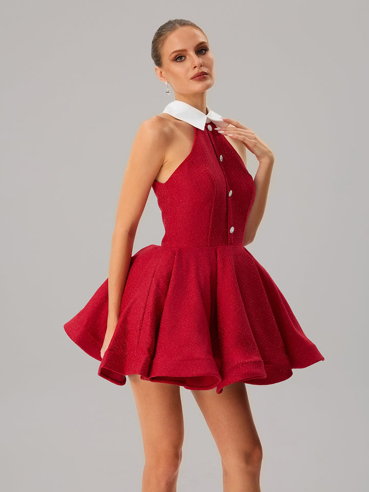Dewcrest Folded Collar Ruffle Mini Dress