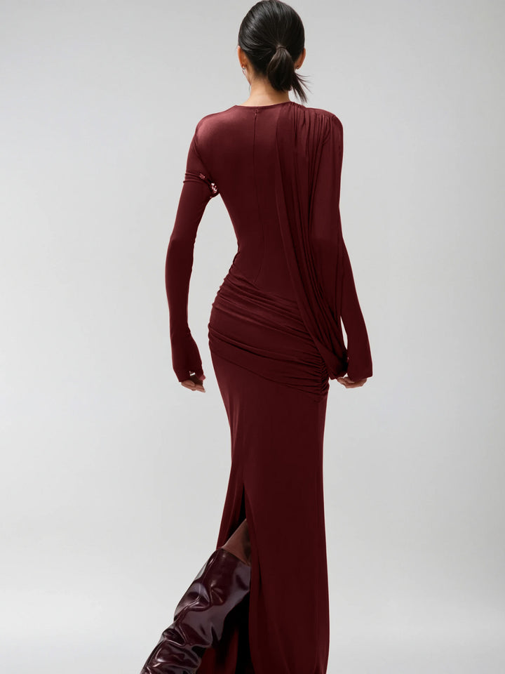 Elevate your evening wardrobe with the Diapason Asymmetric Ruched Maxi Dress—a sophisticated piece that commands attention. The striking asymmetric neckline and expertly ruched detailing create a flattering silhouette that moves beautifully with you. Crafted for those who appreciate modern elegance, this maxi dress transitions seamlessly from special occasions to upscale dinners. The flowing fabric drapes gracefully, ensuring you feel confident and radiant all night long. Make a statement with timeless style that celebrates your individuality.