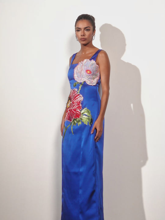 Doryqor Embroidered Flower Maxi Dress In Blue
