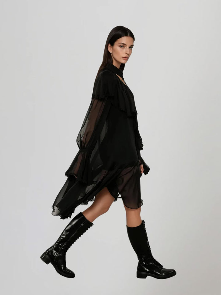 Dynexus Long Sleeve Mesh Ruffle Mini Dress