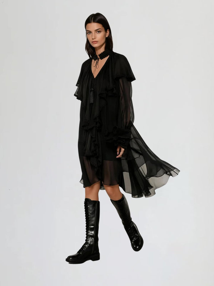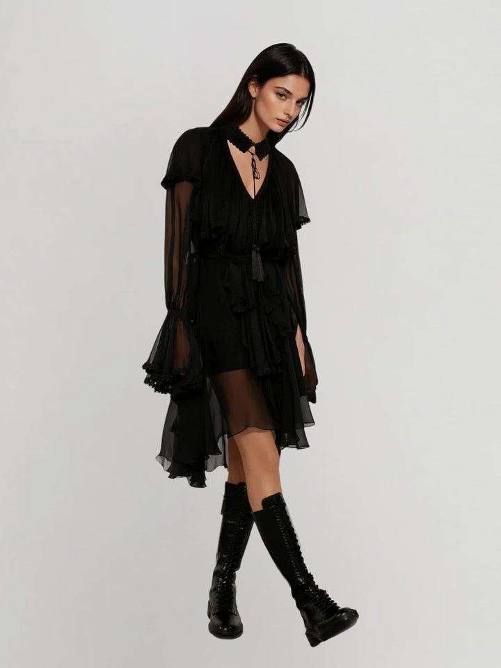 Elevate your style with the Dynexus Long Sleeve Mesh Ruffle Mini Dress. This dress combines delicate mesh fabric with playful ruffle details, creating a effortlessly chic look. Its long sleeves offer subtle coverage, while the mini length adds a flirty edge—perfect for both day and night occasions. Enjoy a confident fit that highlights your silhouette with breathable comfort. Make a memorable impression wherever you go with this stylish, versatile dress.