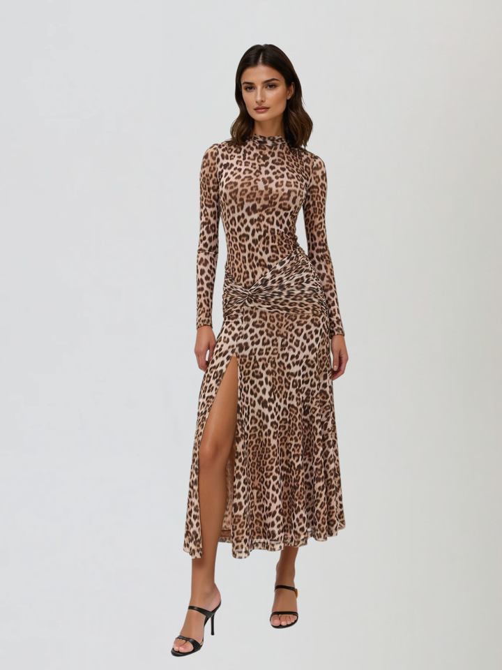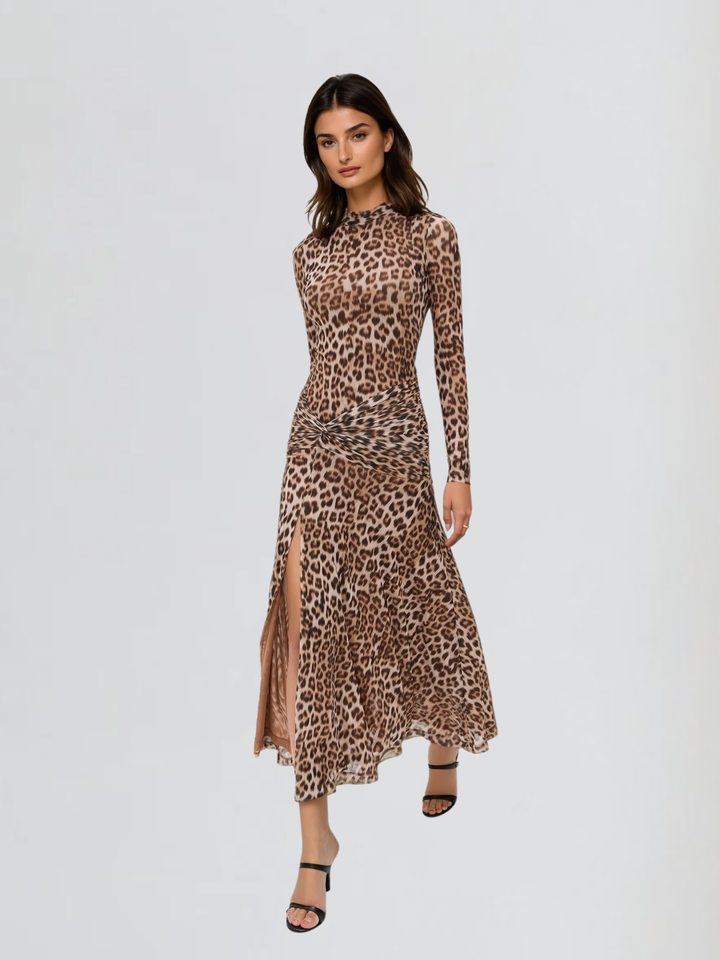 Unleash your wild side with the Etherix Leopard Split Midi Dress—a bold statement piece that commands attention. The striking leopard print brings untamed elegance to any occasion, while the flattering midi length offers sophisticated coverage. The daring side split adds movement and allure, creating a silhouette that's both daring and refined. Perfect for those who refuse to blend in, this dress transforms your look from ordinary to extraordinary. Whether you're heading to a night out or making an entrance at an event, this versatile piece ensures you'll turn heads and feel absolutely confident.