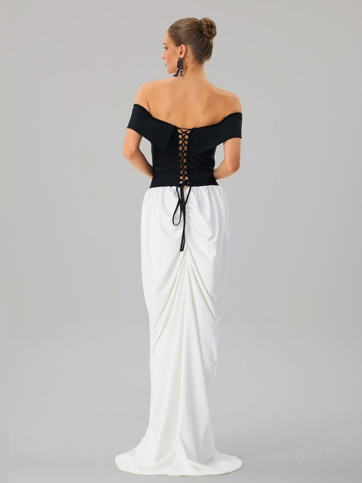 Farrokh Off Shoulder Lace Up Maxi Dress