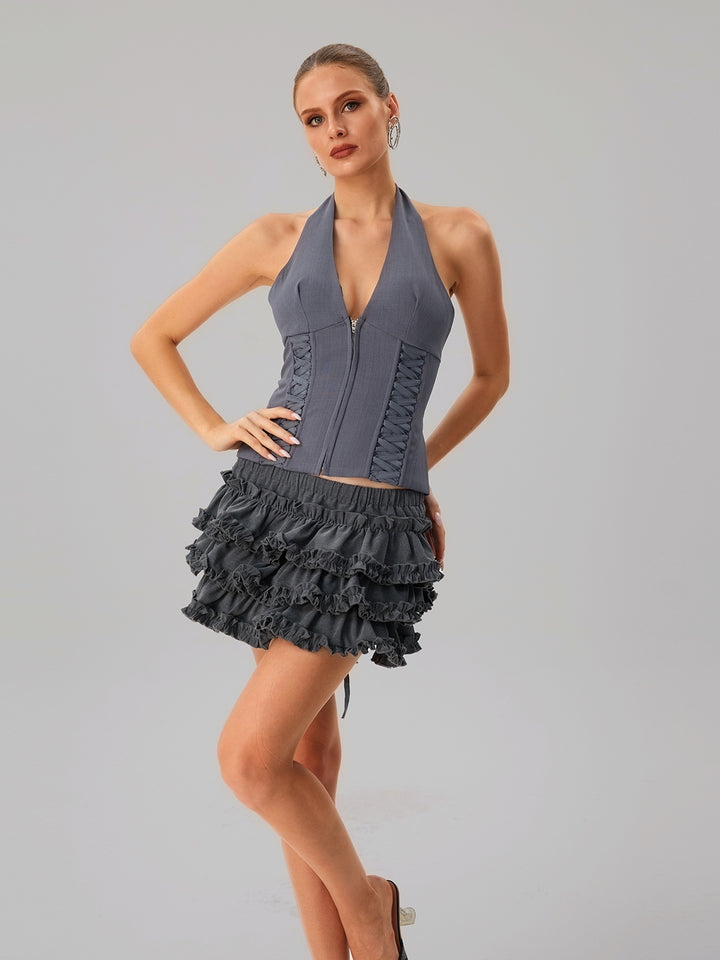 Fatou Halterneck Ruffle Tiered Skirt Set