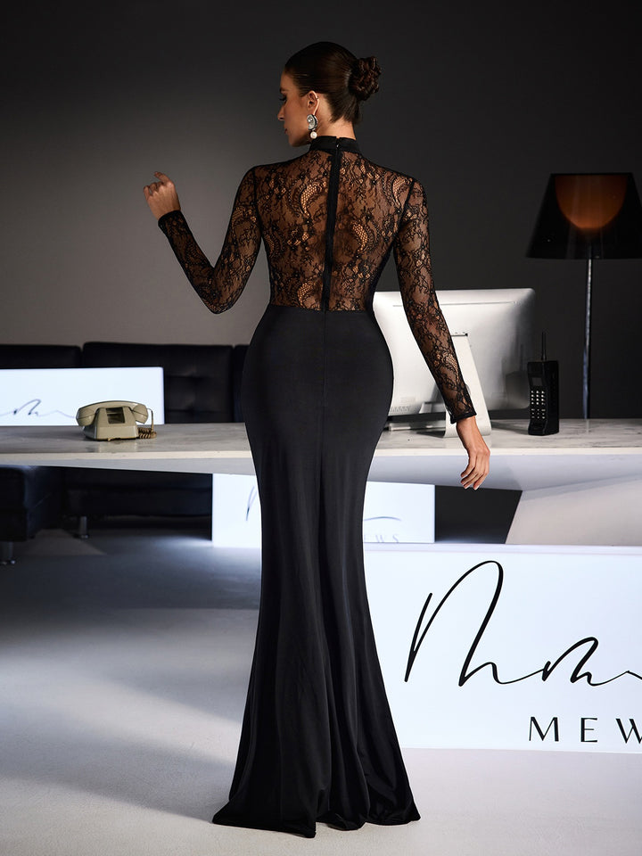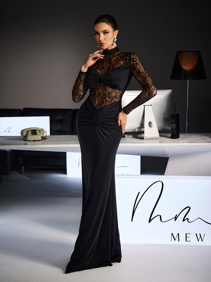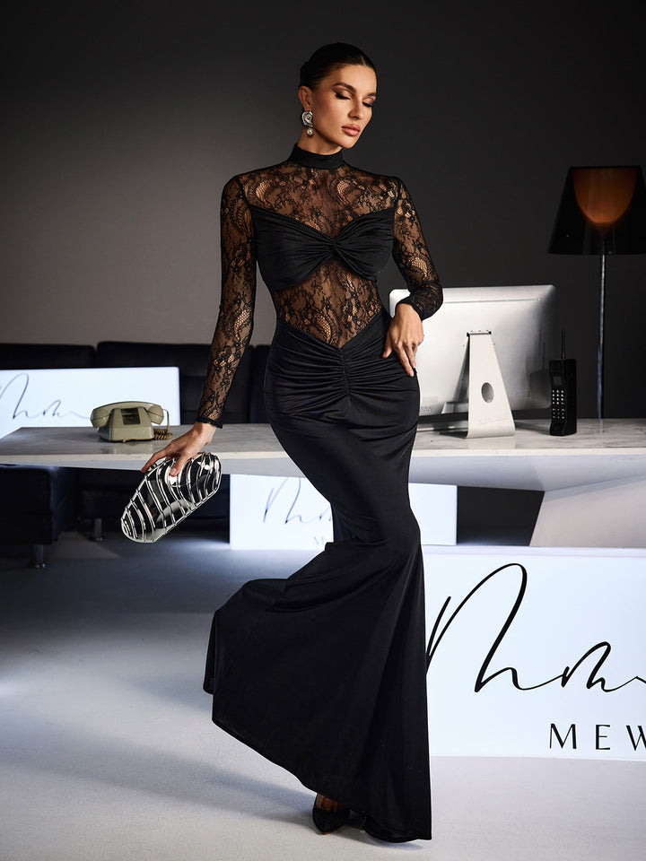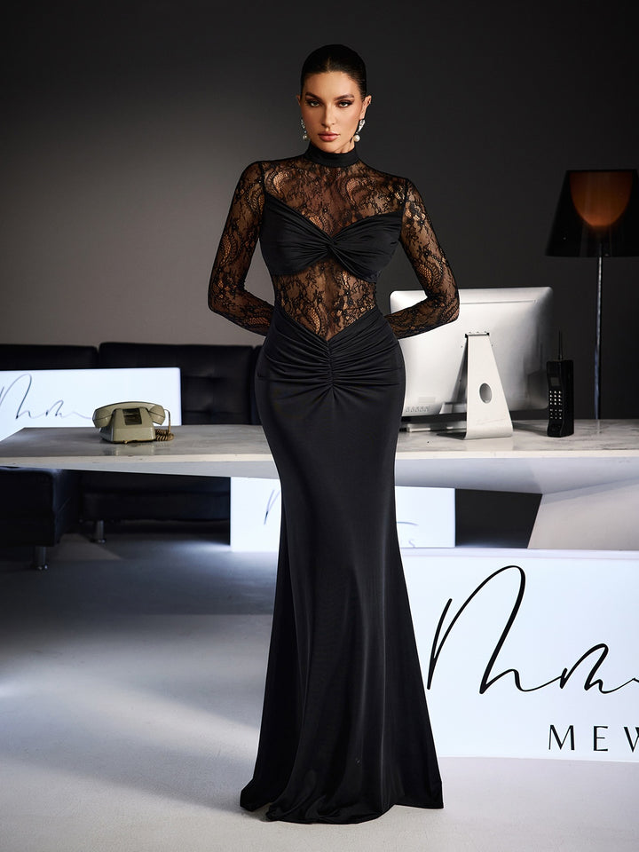 Feri Long Sleeve Embroidered Ruched Maxi Dress