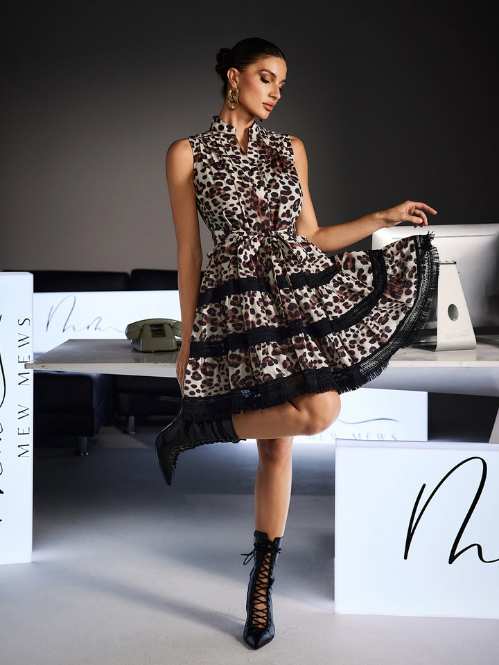 Fermina Sleeveless Leopard Tie Up Mini Dress