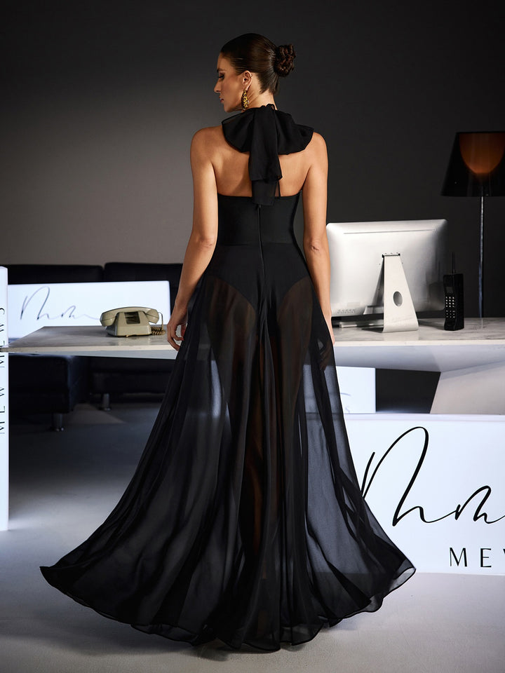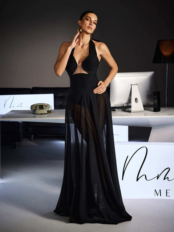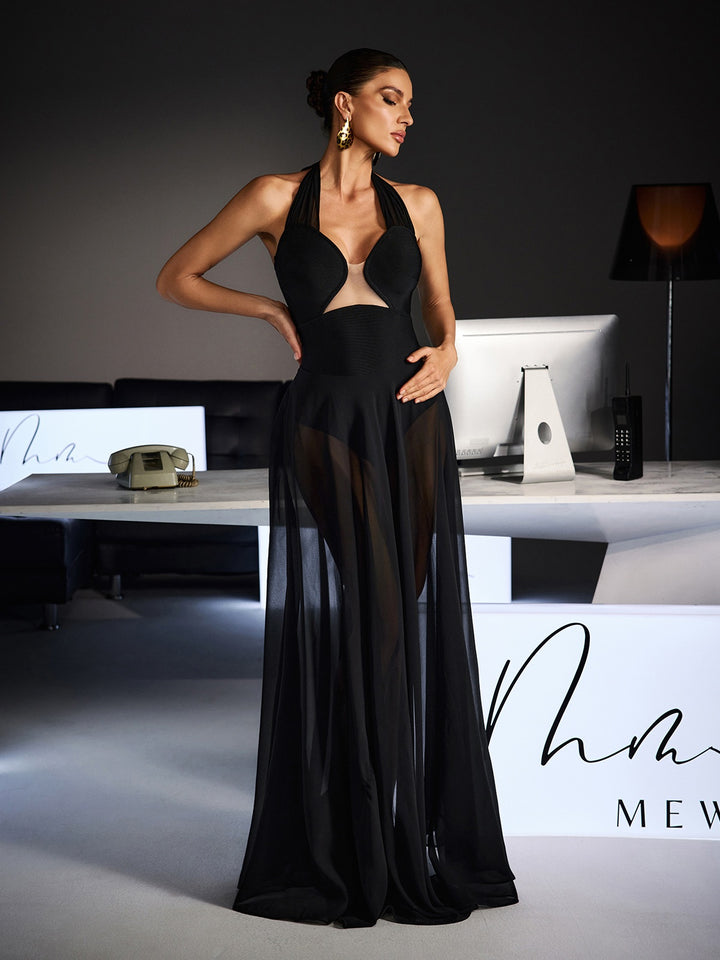 Captivate in this ethereal halterneck mesh maxi dress that balances allure with sophistication. The sheer mesh fabric creates an enchanting, layered aesthetic while maintaining an air of refined mystery. The halterneck design elegantly frames your neckline and shoulders, offering both support and a flattering silhouette. This maxi dress glides gracefully with every movement, making it ideal for upscale events, evening soirées, or any occasion where you want to exude understated glamour. The flowing silhouette provides comfort without sacrificing style, while the mesh detailing adds contemporary edge to a timeless silhouette. Pair with strappy sandals and delicate jewelry to complete your sophisticated look.