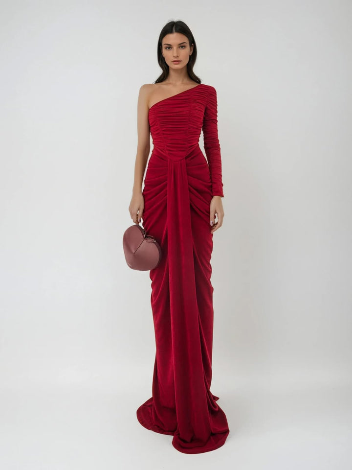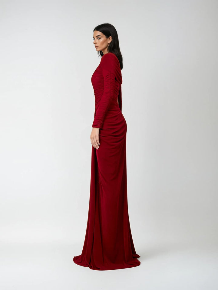 Elevate your evening elegance with this stunning velvet maxi dress, where luxurious fabric meets sophisticated design. The dramatic scarf neckline creates an eye-catching focal point, while strategic ruching flatters your silhouette and adds dimensional texture throughout. Crafted from sumptuous velvet, this floor-length gown drapes beautifully and catches light with every movement, making it perfect for galas, weddings, or upscale events. The combination of refined details and timeless style ensures you'll feel confident and radiant. Transform any occasion into a moment of pure glamour with this show-stopping piece that celebrates both comfort and couture-inspired elegance.