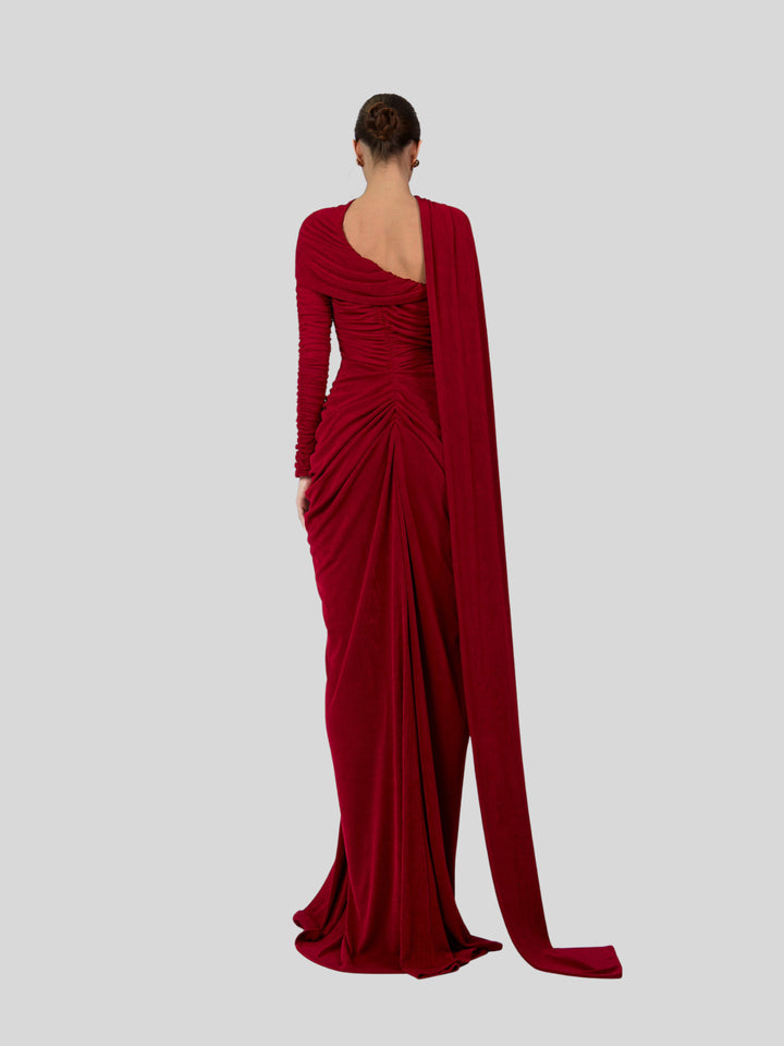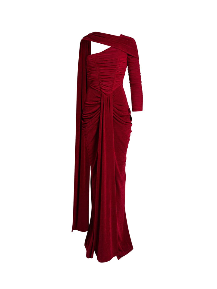 Gigaton Scarf Ruched Velvet Maxi Dress