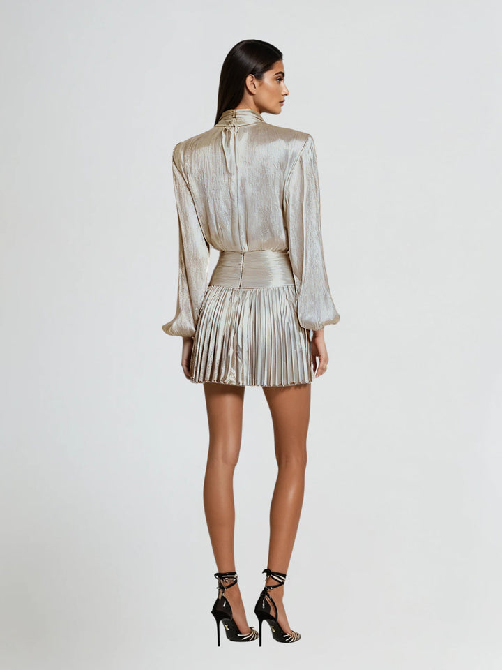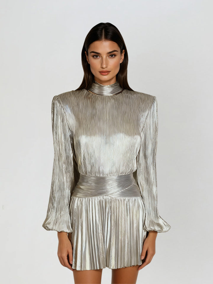 Make a striking impression in the Hamilton Pleated Metallic Dress, a sophisticated piece that combines dynamic texture with eye-catching shine. The intricate pleating adds dimension and movement while the metallic finish ensures you'll stand out in any crowd. This versatile design works beautifully for cocktail events, celebrations, or whenever you want to feel confident and radiant. The flattering silhouette and luxe fabric create an instantly polished look that feels both current and timeless.