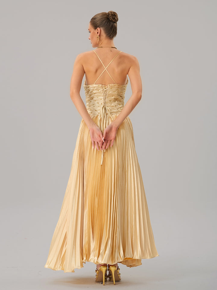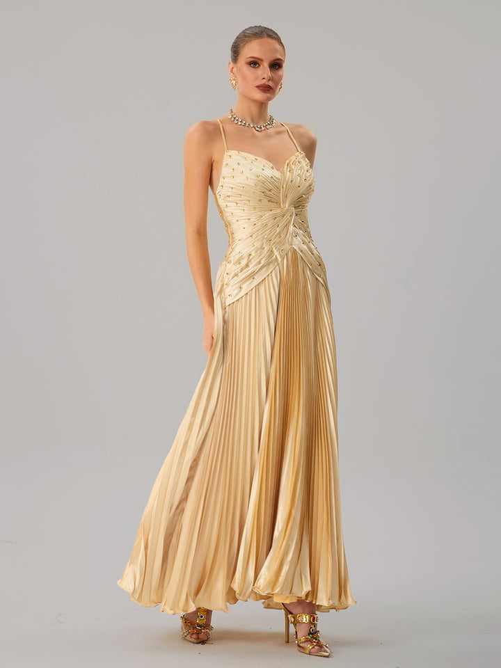 Jagtopo Spaghetti Twisted Pleated Maxi Dress