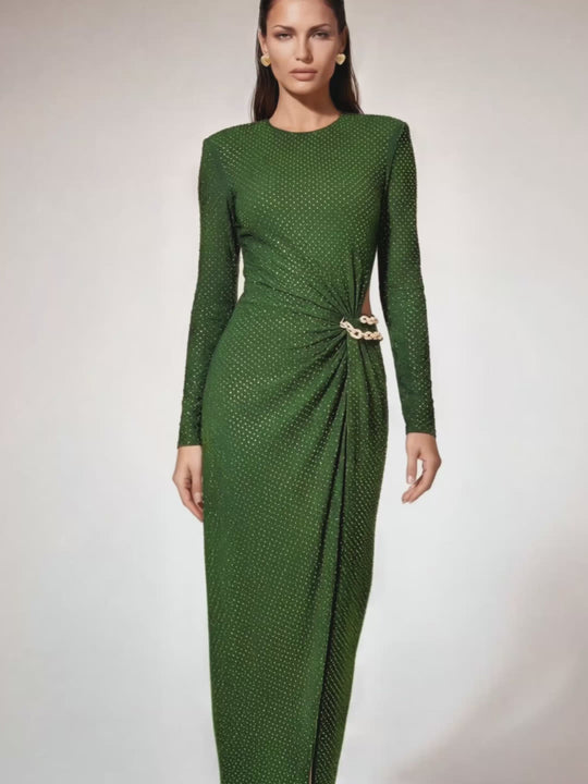 Jayeeta Shoulder Pad Split Maxi Dress In Green
