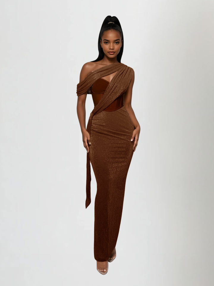 Elevate your evening wardrobe with the Jetsama One Shoulder Draped Maxi Dress—a sophisticated choice for those who appreciate timeless elegance. The asymmetrical one-shoulder neckline creates an effortlessly chic silhouette, while luxurious draping flows gracefully from shoulder to hem, flattering every figure. Perfect for galas, weddings, or upscale events, this maxi dress combines modern design with classic refinement. The flowing fabric moves beautifully with you, ensuring comfort without compromising on style. Make a memorable entrance in a dress that whispers confidence and understated luxury.
