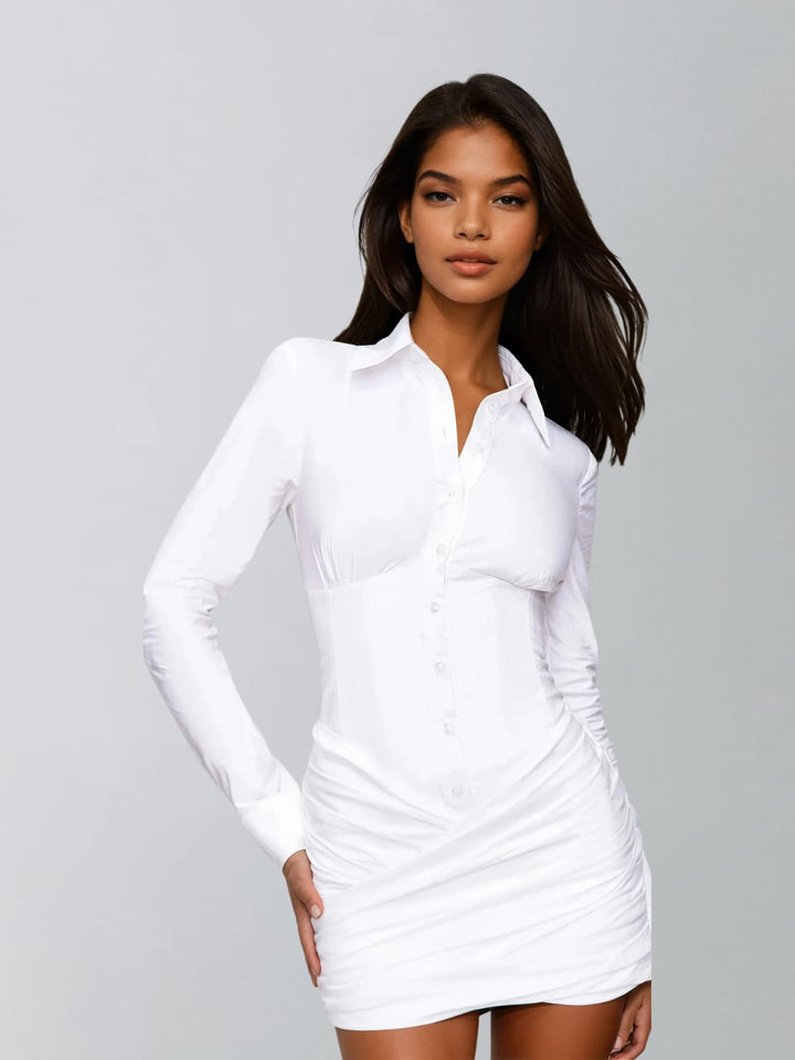 Elevate your wardrobe with the Jetstream Corset Shirt Mini Dress—a bold fusion of structured elegance and contemporary edge. This statement piece features a sculpted corset bodice that flatters your silhouette while the crisp shirt collar adds a touch of sophistication. The mini length keeps things playful and modern, perfect for turning heads at any occasion. Whether you're dressing up for a night out or making a casual statement, this versatile dress delivers confidence and style in one stunning package.