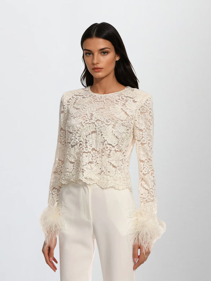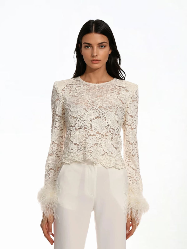 Elevate your wardrobe with the Jovector Fur Sleeve Lace Top, where delicate lace meets luxurious texture. The intricate lace detailing creates an elegant foundation, while plush fur sleeves add an unexpected touch of sophistication and warmth. Perfect for transitioning from day to evening, this statement piece combines feminine charm with modern edge. Whether you're dressing up for a special occasion or adding polish to casual wear, this top delivers versatility without compromising on style. Make an impression with a piece that's as unique as you are.