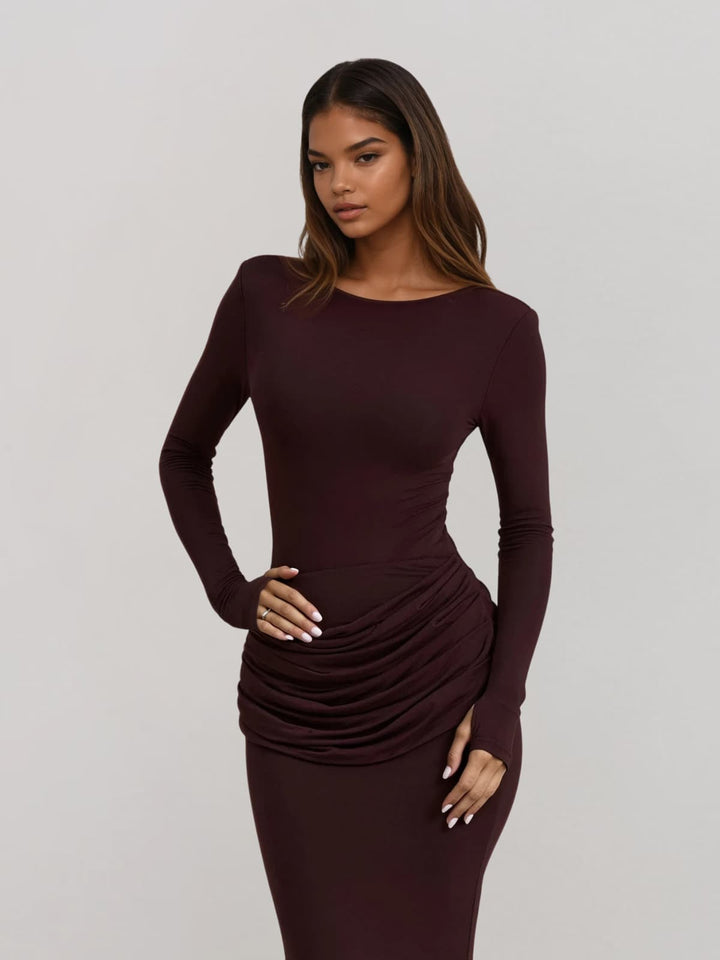 Turn heads in this stunning Jutflare Long Sleeve Ruched Split Maxi Dress In Brown that seamlessly blends elegance with contemporary flair. The rich Brown tone works with virtually any complexion and pairs beautifully with your existing accessories. Ruched detailing sculpts your figure while the dramatic side split offers freedom of movement and a touch of allure. Whether you're attending a formal event, night out, or special celebration, this dress delivers the polish and confidence you're seeking. The long sleeves provide versatile coverage for any season, making this a go-to piece you'll reach for again and again.