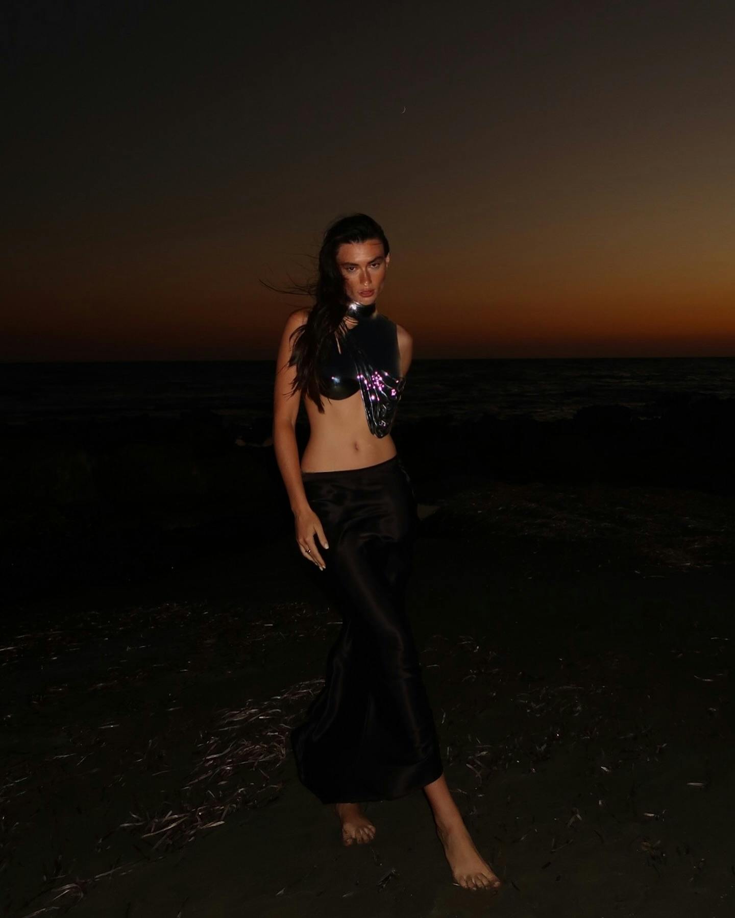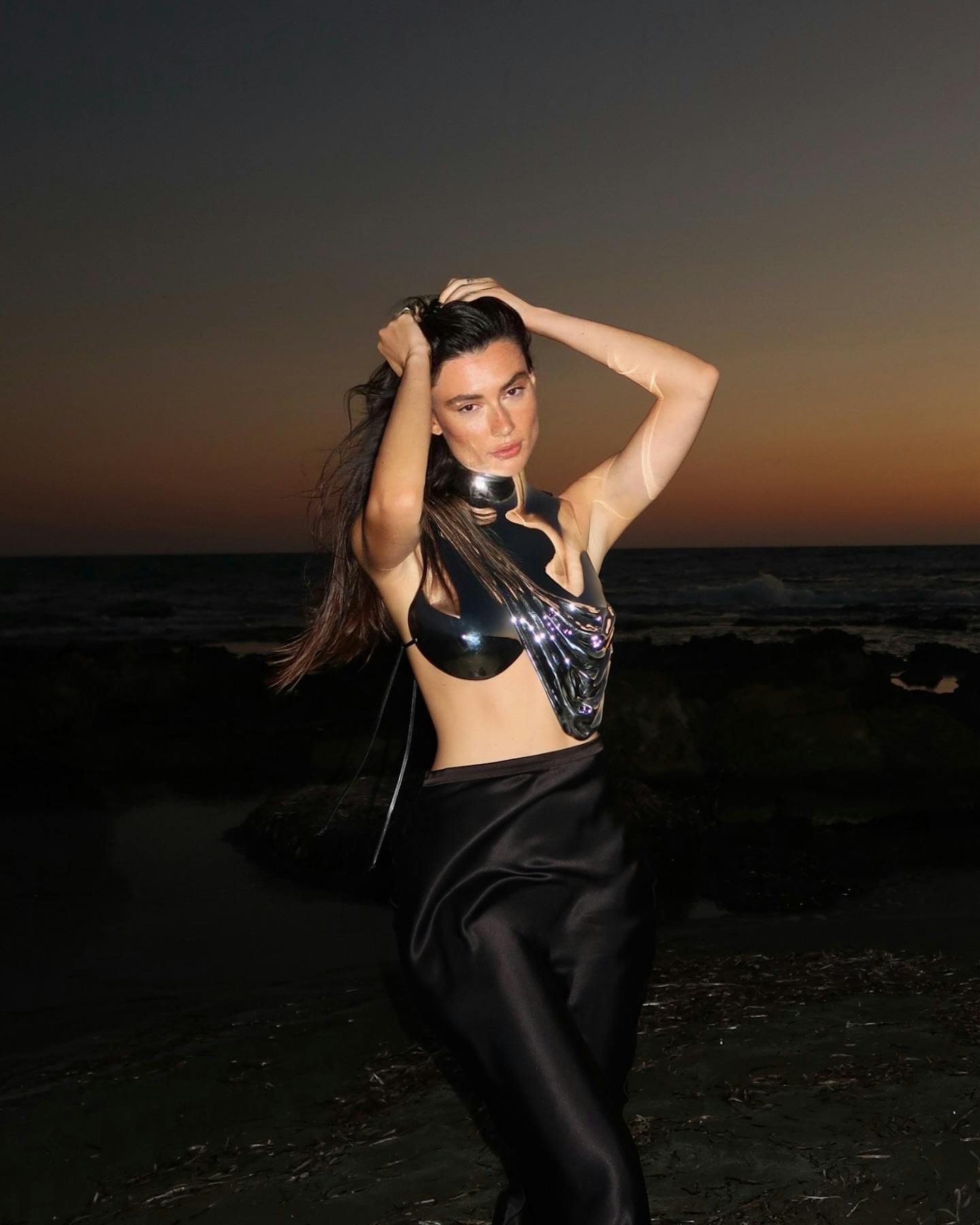 Kari Sleeveless Drapery Armor Top In Silver