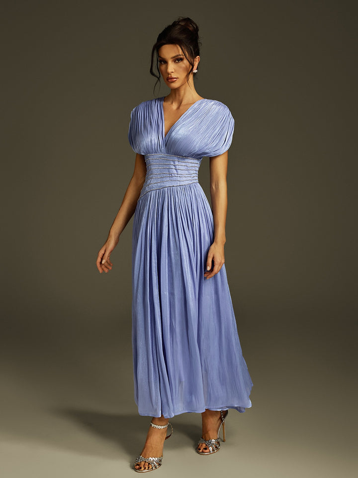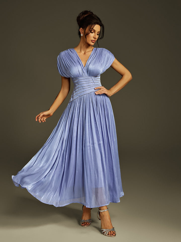 The Kasen V Neck Ruched Maxi Dress combines elegant style with a flattering fit. Its ruched detailing accentuates your silhouette, while the deep V-neck adds a touch of sophistication. Crafted for comfort and movement, this maxi dress is perfect for both special occasions and effortless everyday wear. Elevate your wardrobe with a piece that promises confidence and timeless charm.