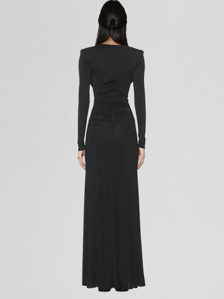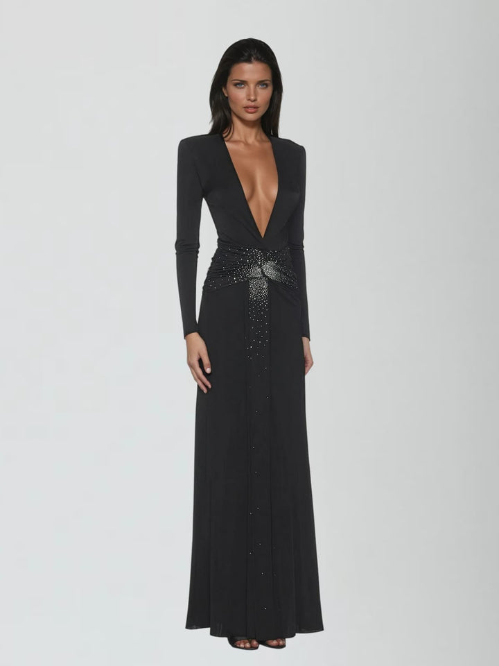 Kramera Plunge Neck Rhinestone Maxi Dress