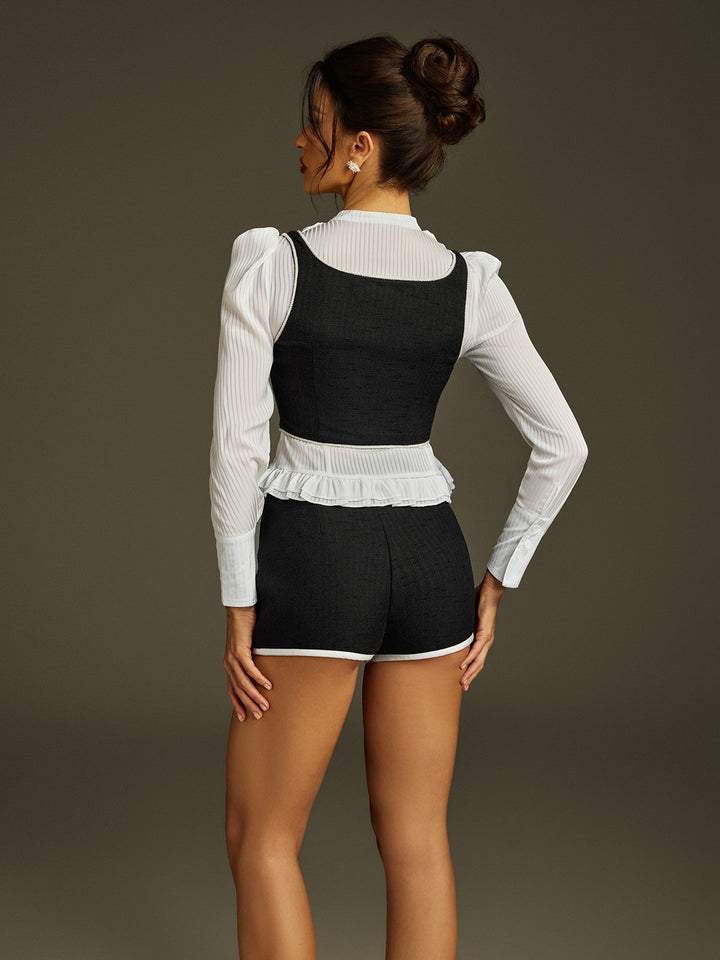 The Lathrop Ruffle Shorts Set combines playful charm with comfortable wear, perfect for warm days. Featuring delicate ruffle detailing, this set offers a stylish yet relaxed fit that moves with you. Crafted from breathable fabric, it keeps you cool while adding a touch of feminine elegance to your casual wardrobe. Elevate your everyday look effortlessly with this versatile and flattering shorts set.